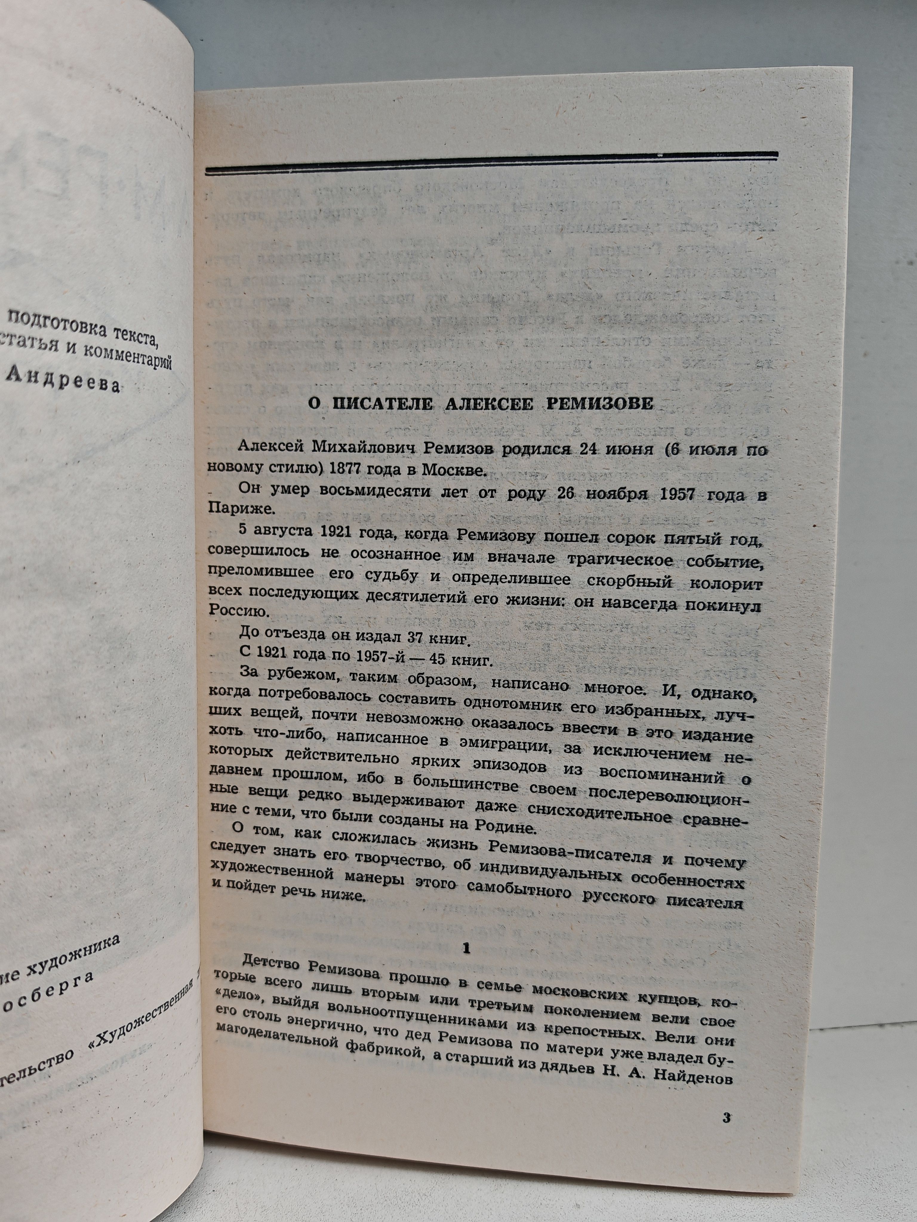 Алексей Михайлович Ремизов, замечательный русский писатель, один из наиболее ярких стилистов в русской литературе, выдающийся представитель русского послереволюционного зарубежья, оставивший заметный след в литературе и оказавший большое влияние на многих писателей, в частности, на Е. Замятина, Л. Леонова, Б. Пильняка и других. М. Цветаева называла книги Ремизова `Живой сокровищницей русской души и речи`.