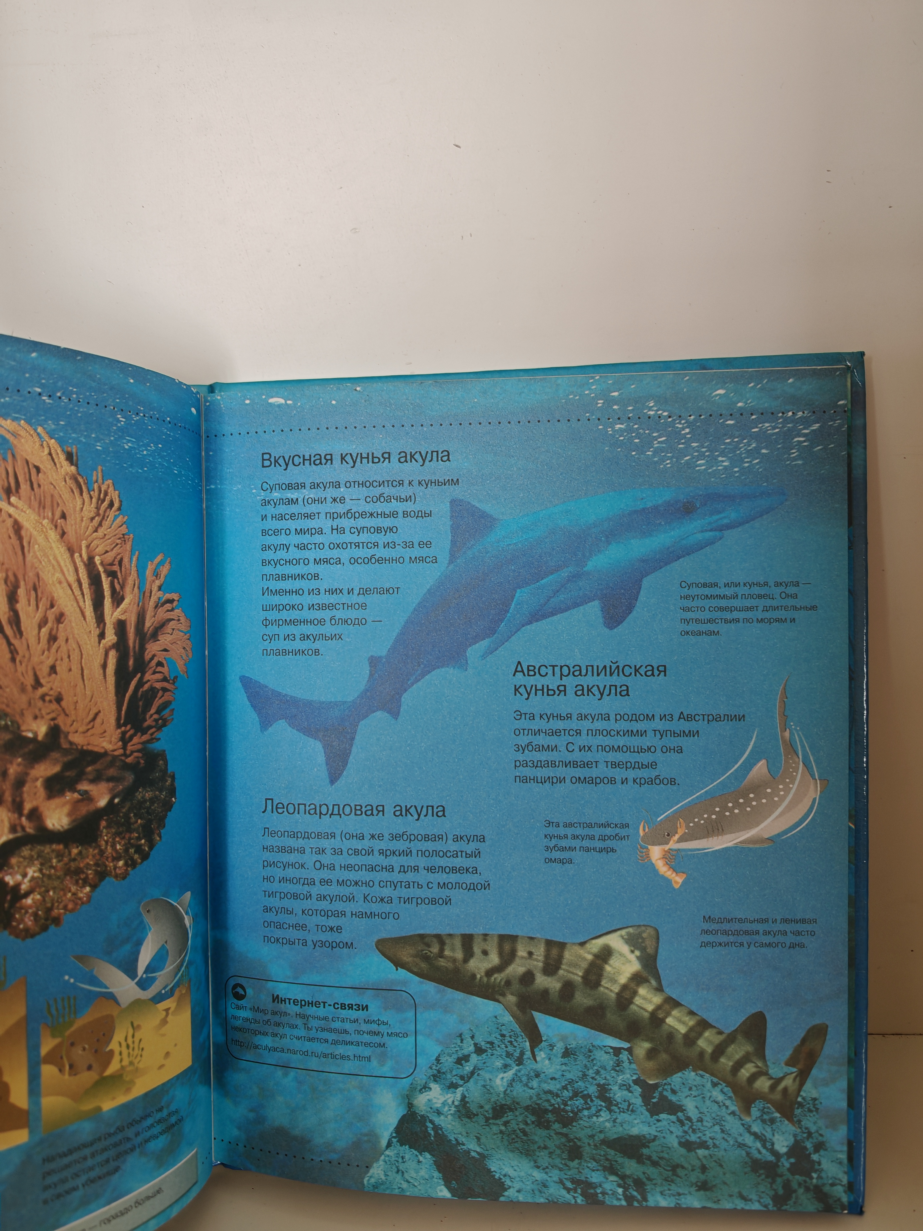 Книга рассказывает о самых разных видах акул, их образе жизни и повадках. В издании собраны неизвестные и удивительные факты об этих удивительных животных. Предназначена для младшего и среднего школьного возраста. Сочетает формат энциклопедии с дополнительными интернет-ресурсами.