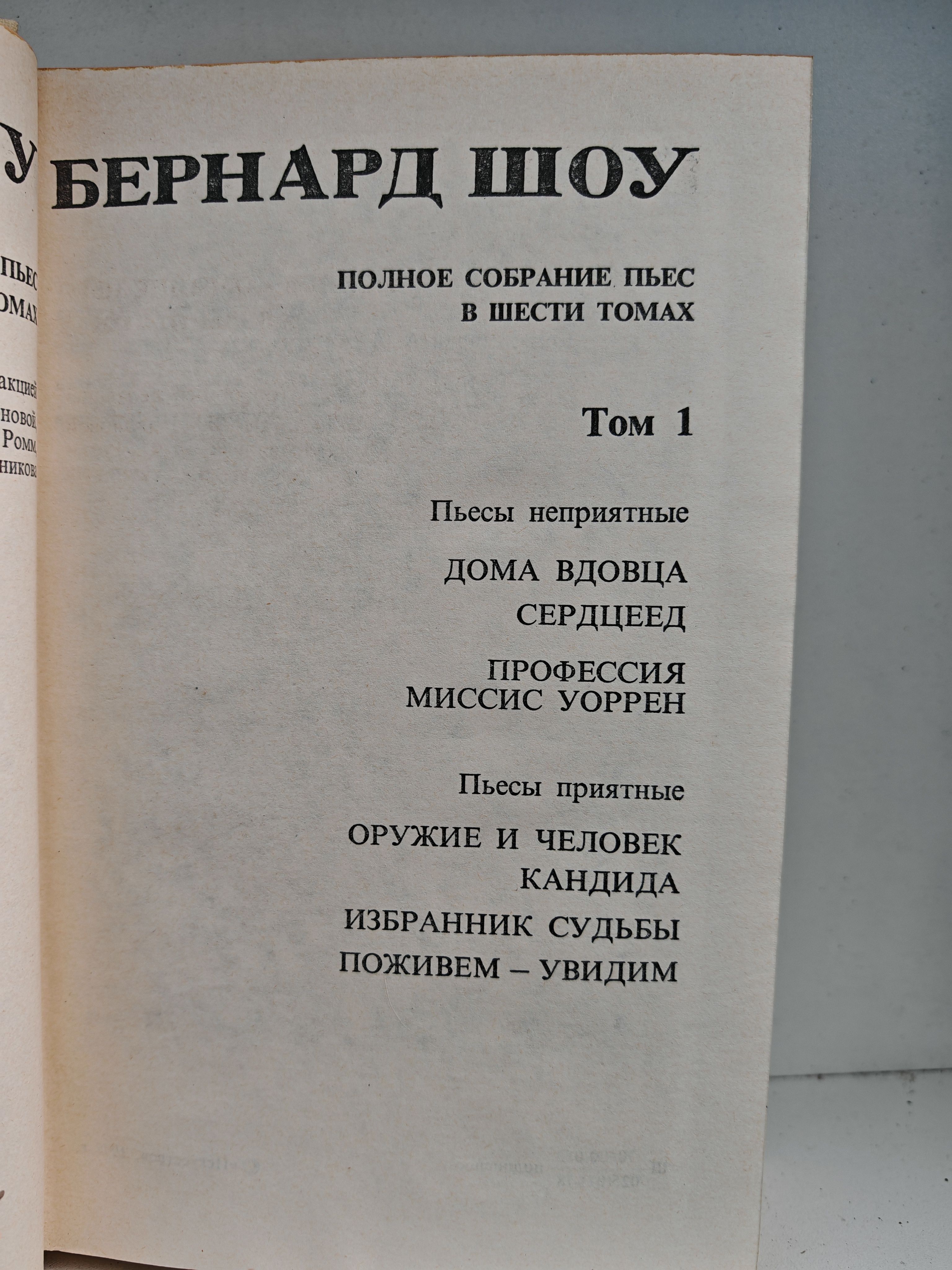 В первый том вошли пьесы: Дома вдовца. Сердцеед. Профессия миссис Уоррен. Оружие и человек. Кандида. Избранник судьбы. Поживем - увидим.