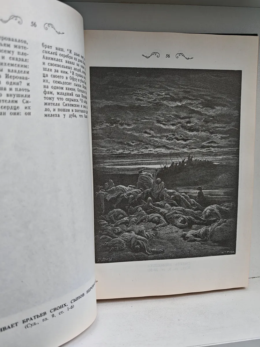 Альбом содержит 230 эффектно оформленных иллюстраций — гравюр известного французского художника XIX века Гюстава Доре к Библии. Блестяще исполненные иллюстрации впечатляют своими романтическими настроениями. Каждая иллюстрация сопровождается комментариями из текста Библии, что делает издание не только художественным, но и познавательным. Предназначен для ценителей искусства, библейской тематики и истории гравюры.
