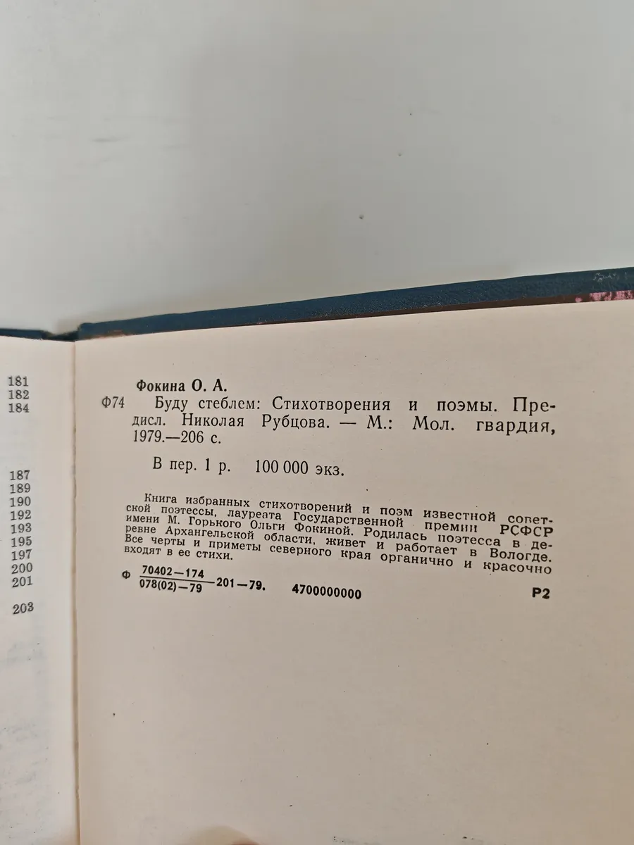 Ольга Александровна Фокина (1937–2023) — советская и русская поэтесса, лауреат Государственной премии РСФСР имени М. Горького (1976), почётный гражданин города Вологды. Родилась в деревне Архангельской области, жила и работала в Вологде.