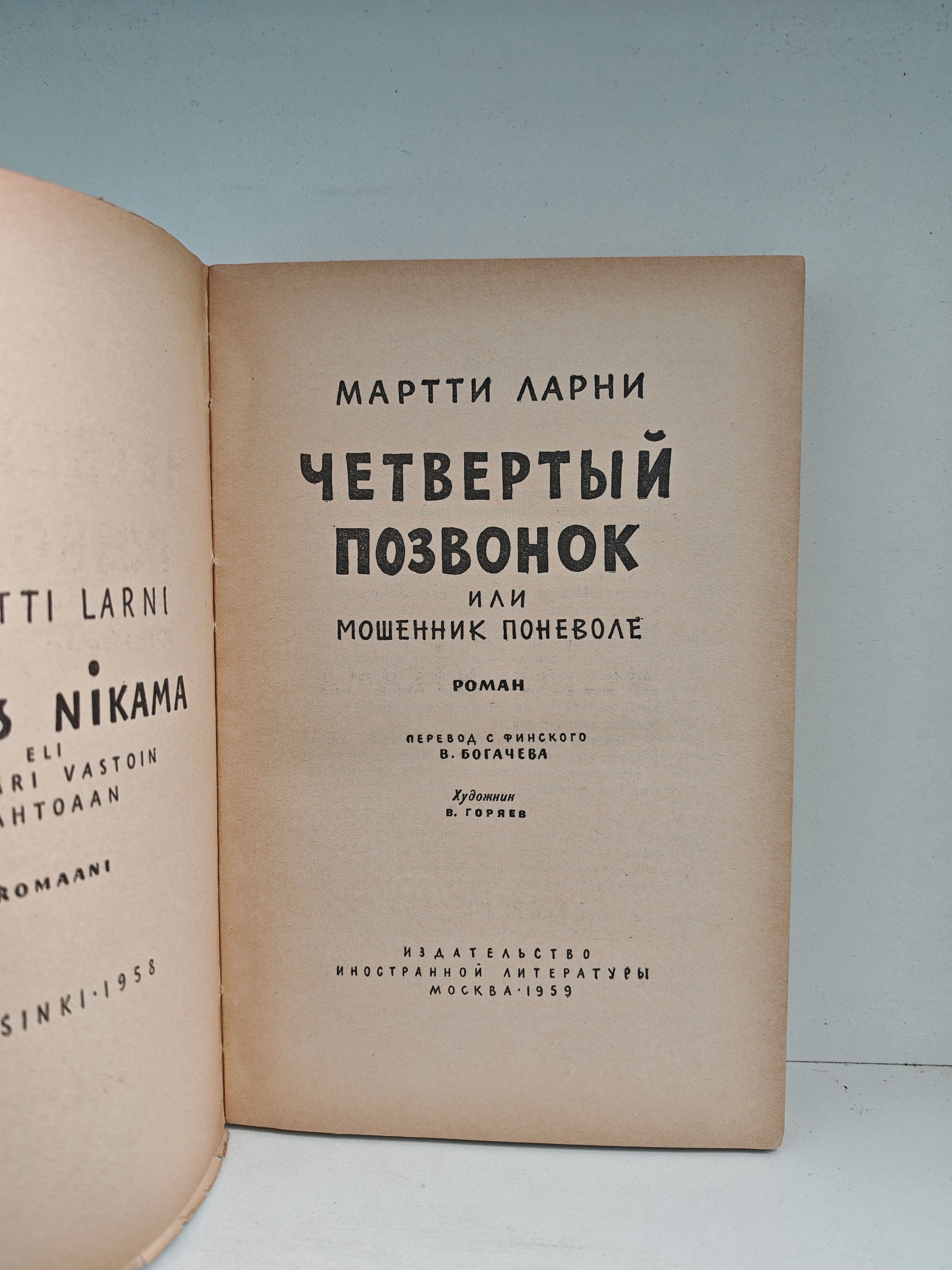 "Четвертый позвонок или Мошенник поневоле" - это роман Марти Ларни, который был переведен с финского В. Боленевой. Изданный в 1959 году, этот роман предлагает читателю погрузиться в увлекательный мир, где главные герои сталкиваются с неожиданными поворотами судьбы. Книга издана в Москве издательством "Иностранная литература" и представляет собой классический пример художественной литературы середины XX века. Отличный выбор для любителей зарубежной прозы.