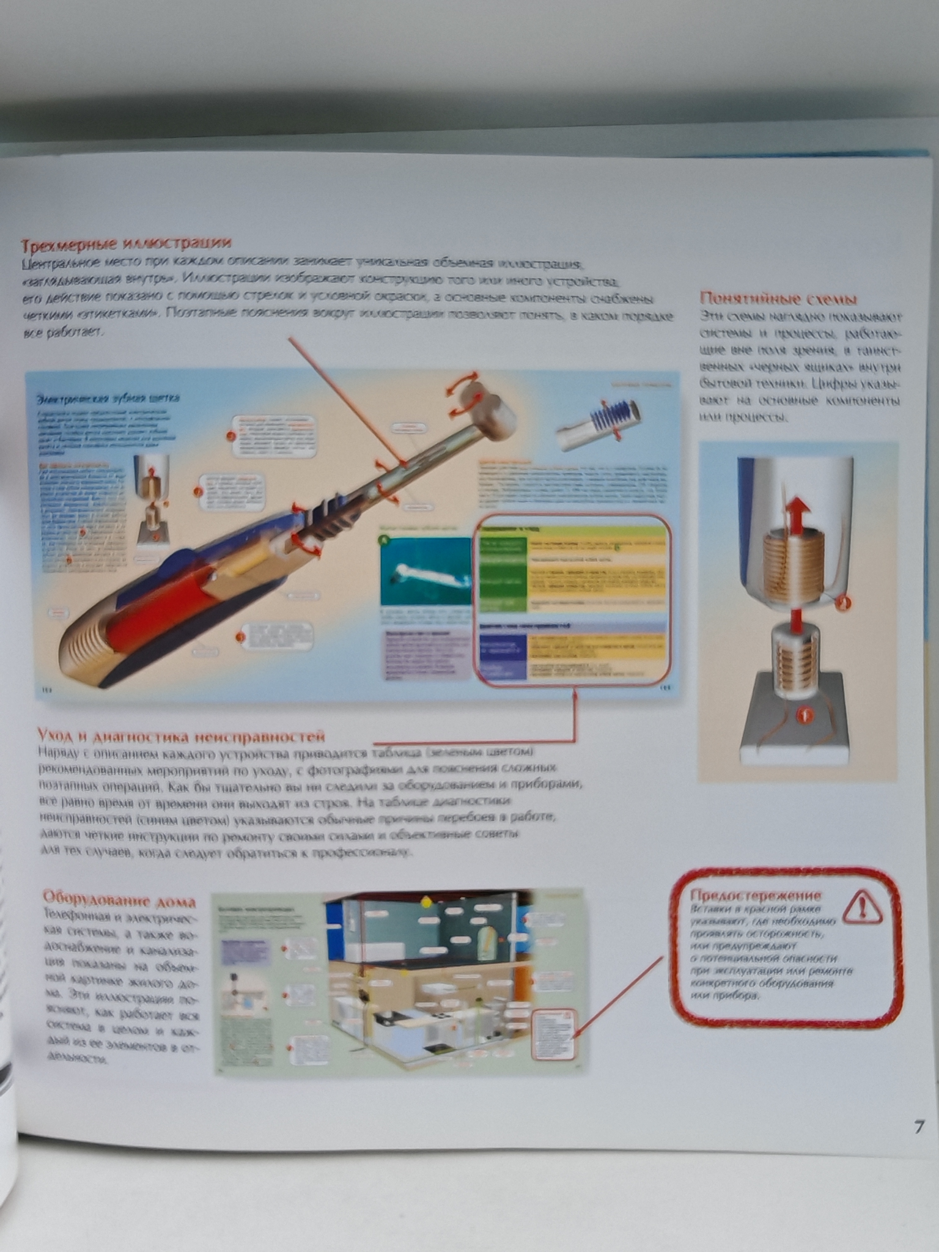 Книга разбирает устройства и системы дома «по винтикам»: тостеры и стиральные машины, телевизоры и видеомагнитофоны, телефоны и компьютеры, электродрели и перфораторы, электропроводка, отопительная система и канализация. В книге: — уникальные диаграммы «Что там внутри» (наглядно демонстрируют, как работает домашняя техника); — списки необходимых профилактических работ (помогут содержать дом в образцовом порядке); — таблицы наиболее частых неисправностей («скорая помощь» для техники); — пошаговые инструкции по устранению поломок (сберегут время и деньги).