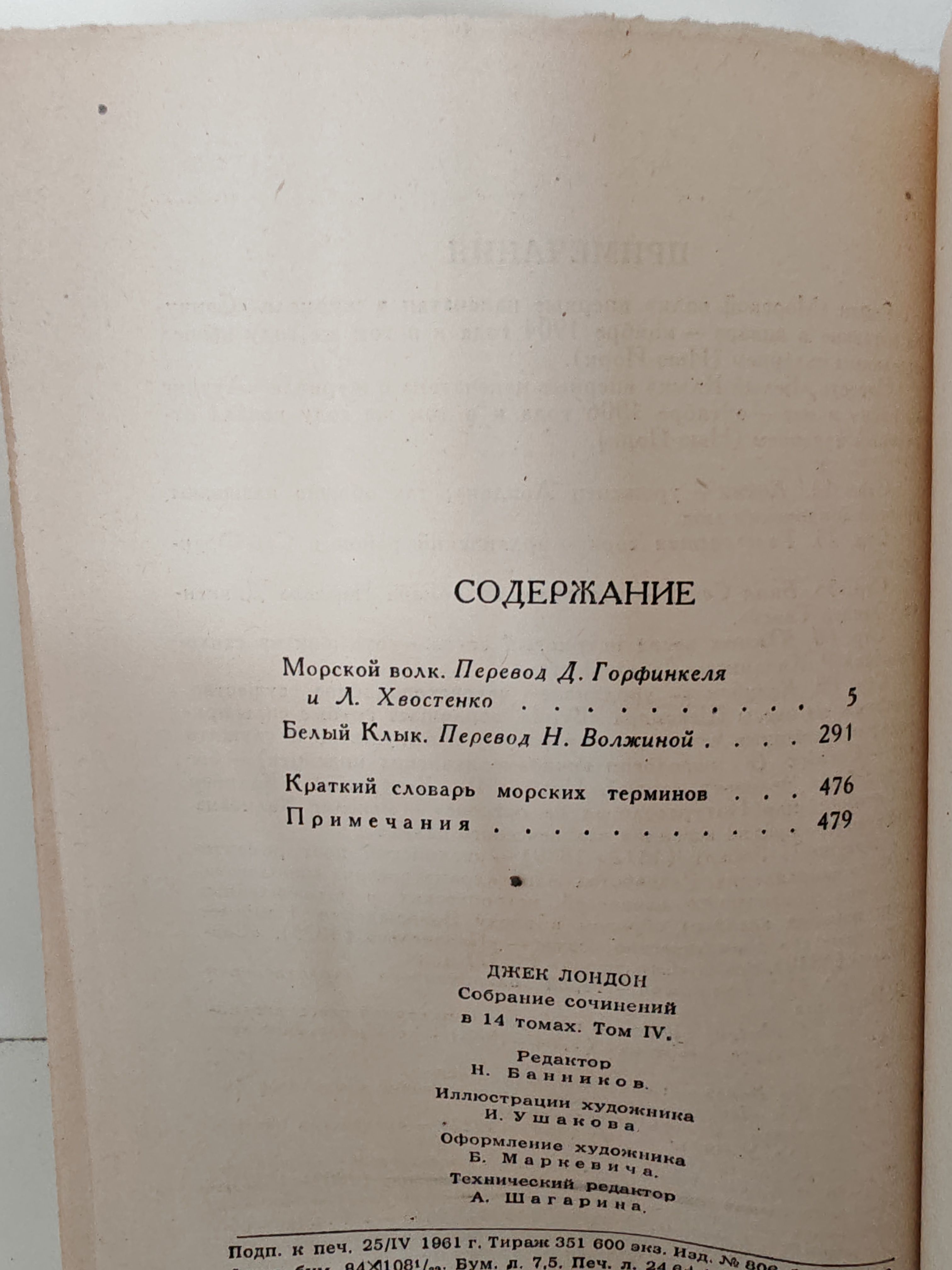 - Повесть «Белый клык» (в переводе Н. Волжиной) — рассказ о судьбе полуволка-полусобаки, его борьбе за выживание в суровой природе и постепенном приручении человеком. Книга раскрывает тему взаимоотношений человека и животного, силы инстинкта и преданности.