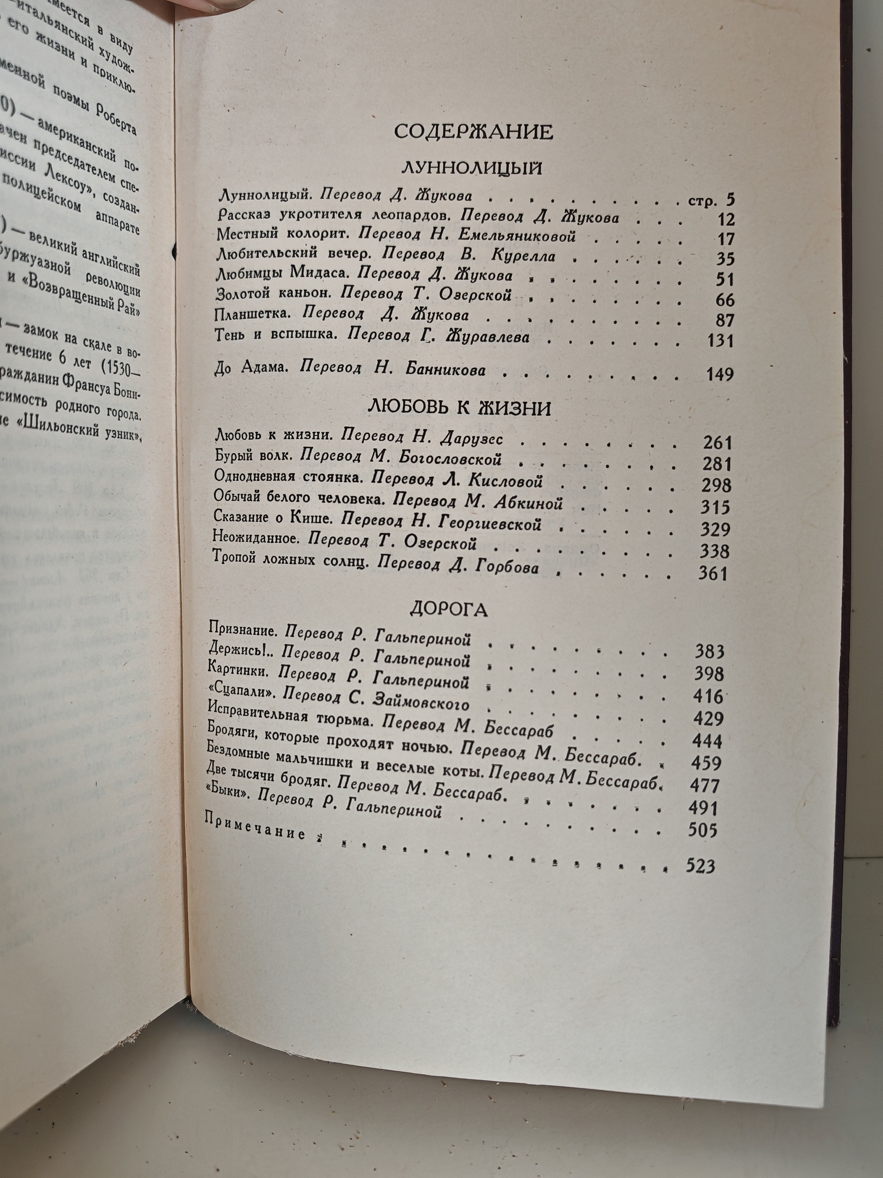 - сборник рассказов «Любовь к жизни» (с одноимённым рассказом, а также «Бурый Волк», «Однодневная стоянка» и др.);