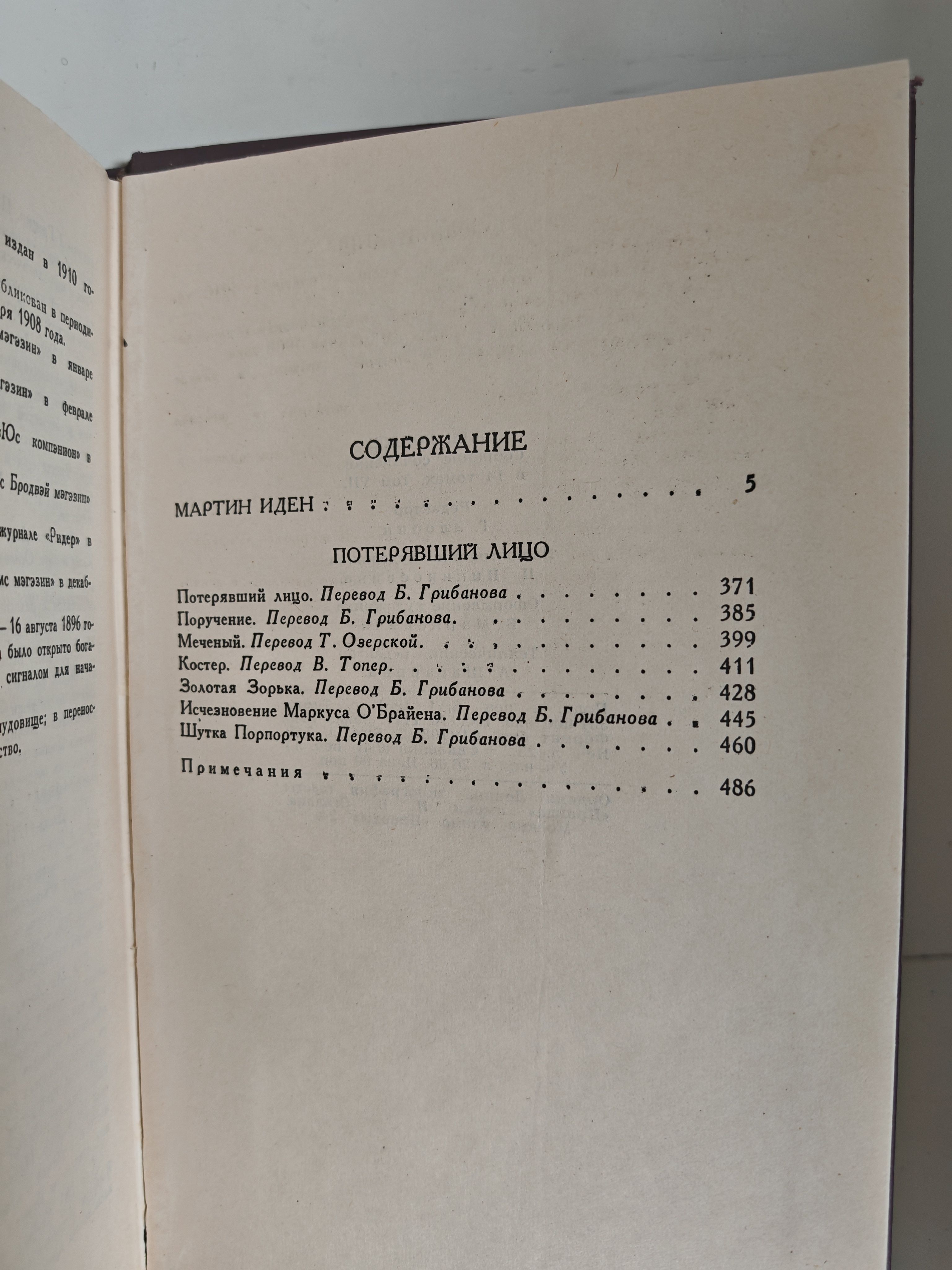 - Сборник рассказов «Потерявший лицо» — включает семь коротких историй («Поручение», «Меченый», «Костёр», «Золотая Зорька», «Исчезновение Маркуса O'Брайена», «Шутка Порпортука» и одноимённый рассказ «Потерявший лицо»). В этих произведениях Лондон демонстрирует свой фирменный стиль: динамичный сюжет, яркие образы, философские размышления о человеческой природе, силе воли и борьбе за выживание.