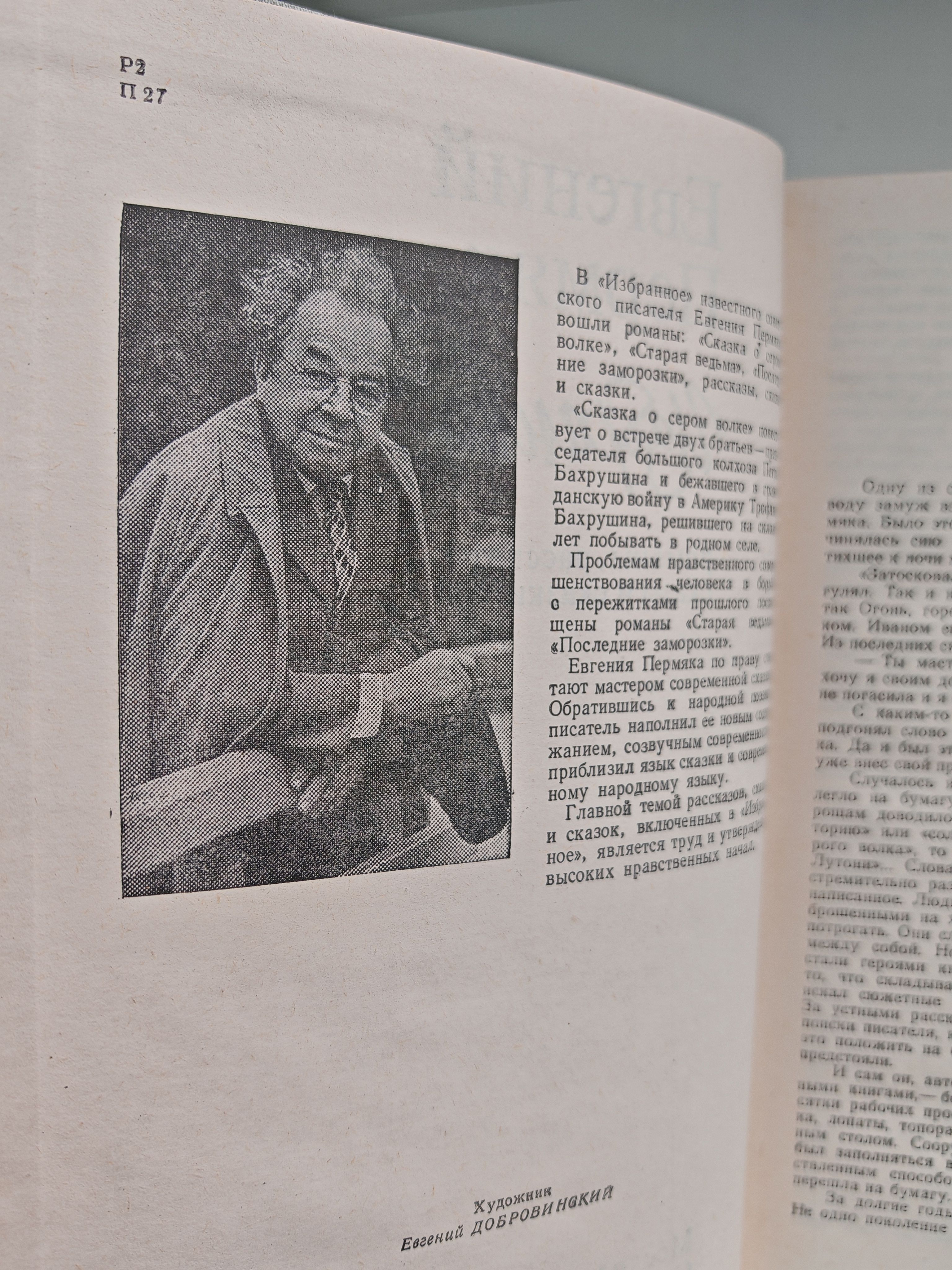 В "Избранное" известного советского писателя Евгения Пермяка вошли романы: "Сказка о сером волке", "Старая ведьма", "Последние заморозки", рассказы, сказы и сказки. "Сказка о сером волке" повествует о встрече двух братьев - председателя большого колхоза Петра Бахрушина и бежавшего в гражданскую войну в Америку Трофима Бахрушина, решившего на склоне лет побывать в родном селе. Проблемам нравственного совершенствования человека в борьбе с пережитками прошлого посвящены романы "Старая ведьма" и "Последние заморозки". Евгения Пермяка по праву считают мастером современной сказки. Обратившись к народной поэзии, писатель наполнил ее новым содержанием, созвучным современности, приблизил язык сказки к современному народному языку. Главной темой рассказов, сказов и сказок, включенных в "Избранное", является труд и утверждение высоких нравственных начал.