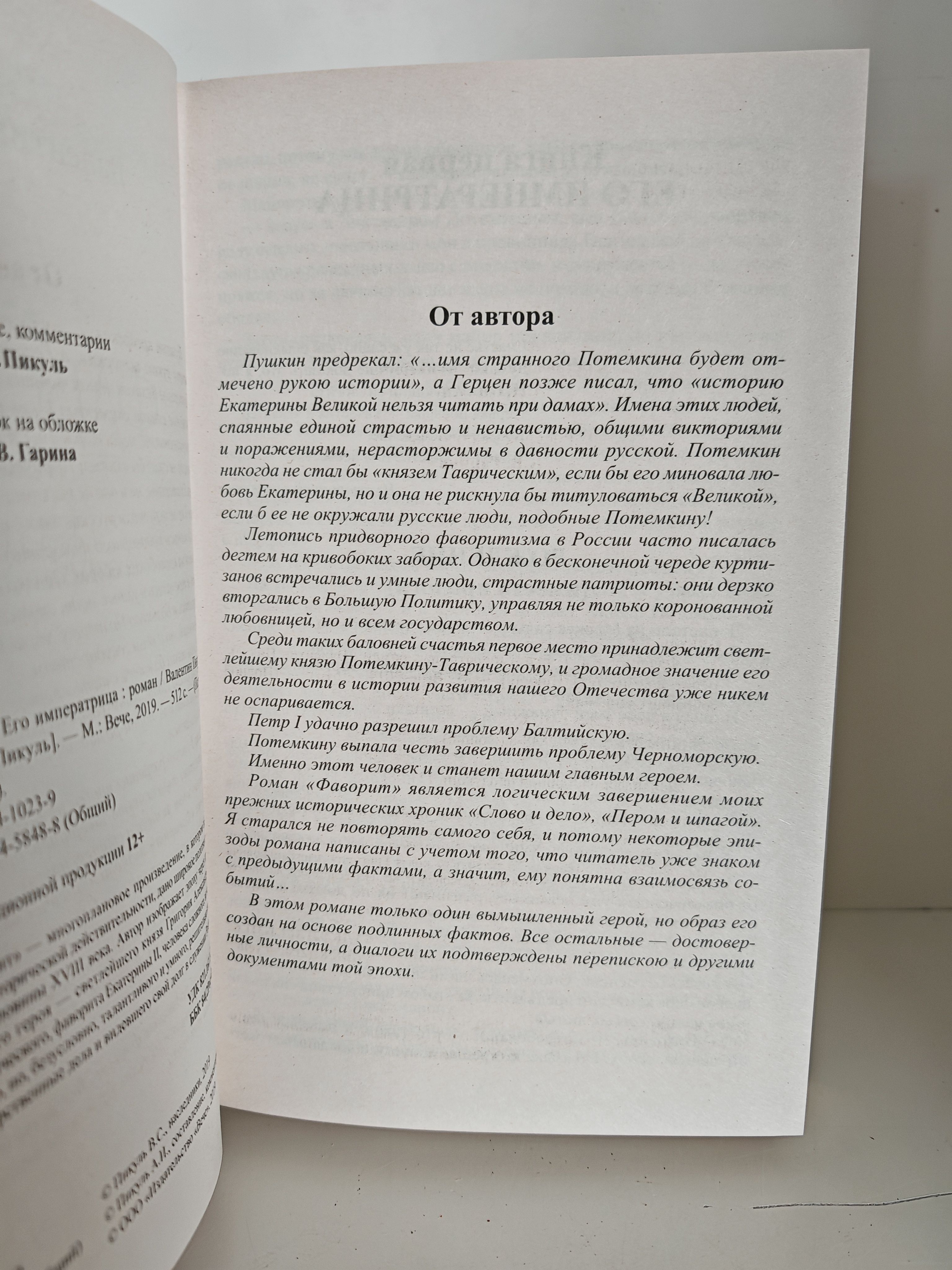 Роман "Фаворит" - многоплановое произведение, в котором поднят огромный пласт исторической действительности, дано широкое полотно жизни России второй половины XVIII века. Автор изображает эпоху через призму действий главного героя - светлейшего князя Григория Александровича Потемкина-Таврического, фаворита Екатерины II; человека сложного, во многом противоречивого, но, безусловно, талантливого и умного, решительно вторгавшегося в государственные дела и видевшего свой долг в служении России. Составление, комментарии А. И. Пикуль.