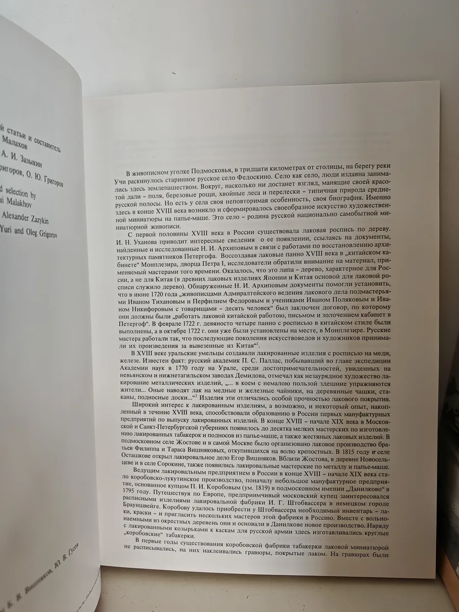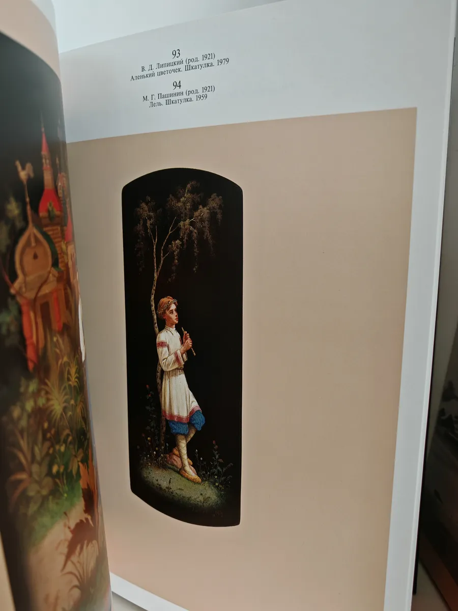 Альбом-каталог, посвящённый искусству федоскинской лаковой миниатюры — уникальному направлению русской декоративно-прикладной живописи, возникшему в селе Федоскино (Подмосковье) в конце XVIII века. Издание содержит многочисленные репродукции изделий федоскинской фабрики (ларцы, шкатулки, коробочки и др.), выполненных в фирменной технике «письмо по сквозному» с использованием лессировочных красок, скани, цировки и других приёмов. Текст представлен на русском и английском языках.