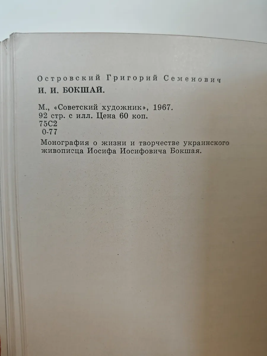 Книга выпущена издательством «Советский художник» в рамках популяризации наследия советских художников. Посвящена всестороннему анализу жизни и творчества И. И. Бокшая, включая его педагогическую деятельность и вклад в развитие художественной школы на Закарпатье