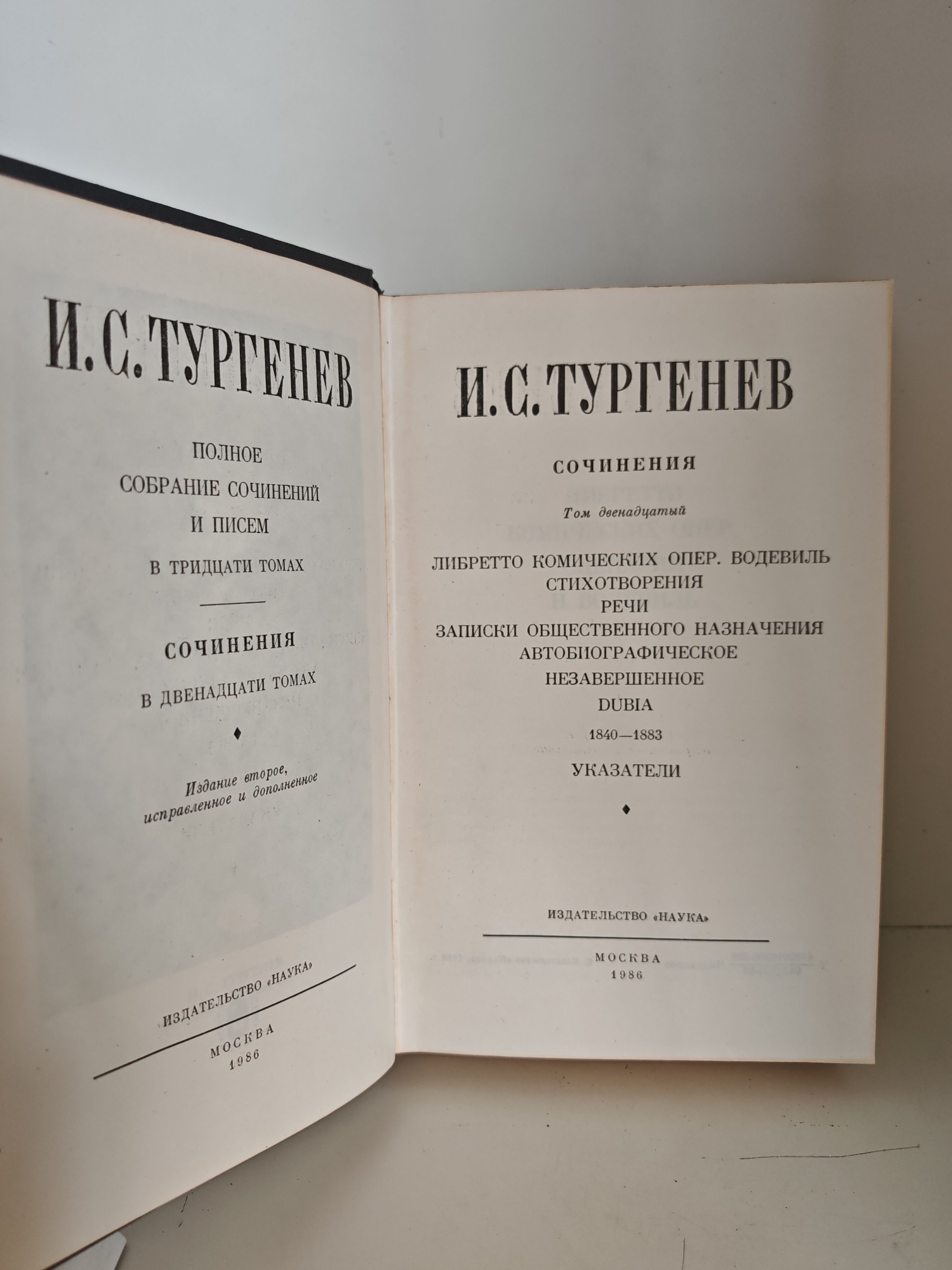 Серия: «Полное собрание сочинений и писем И. С. Тургенева в тридцати томах». Подсерия — «Сочинения в двенадцати томах». Издано издательством «Наука» (Москва). Проект реализован с целью наиболее полного представления творческого наследия писателя, включая редкие и малоизученные тексты.