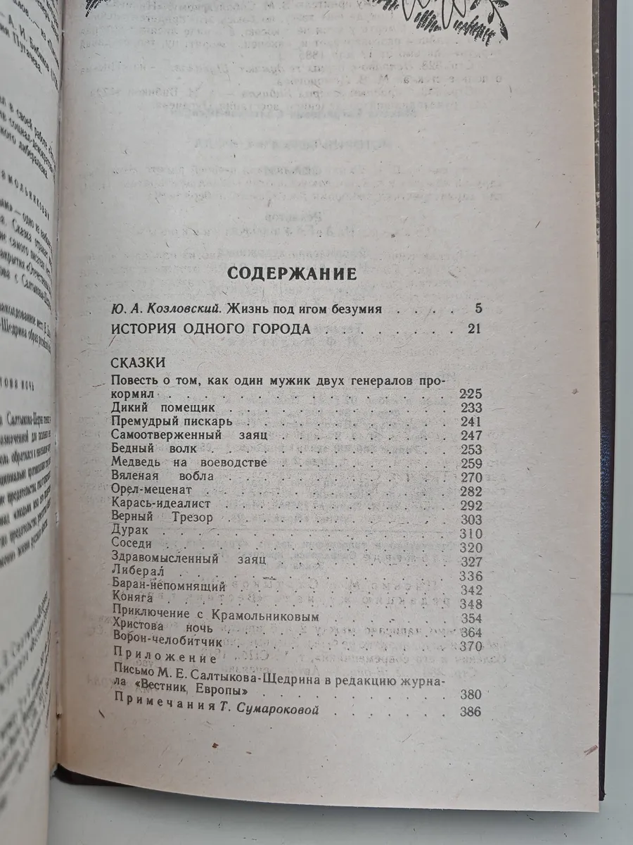 Издание включает одно из лучших сатирических произведений М. Е. Салтыкова-Щедрина (1826–1889) — «Историю одного города», обличающую бессмысленную власть царизма, а также знаменитые сатирические сказки: «Премудрый пискарь», «Дикий помещик», «Медведь на воеводстве» и другие.