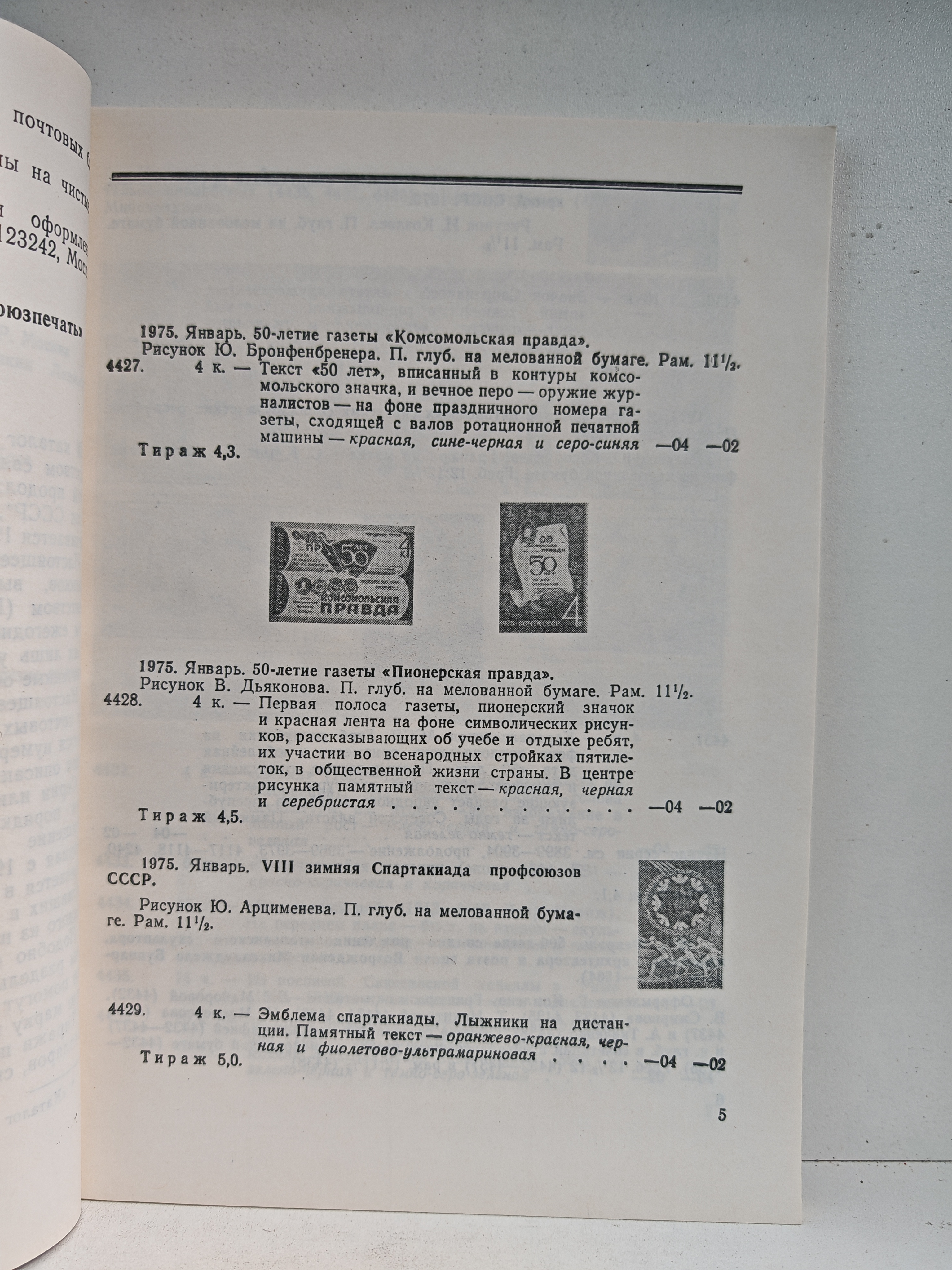 Справочное пособие для филателистов и работников «Союзпечати», занимающихся реализацией почтовых марок СССР. В каталоге дано описание почтовых марок и блоков, выпущенных Министерством связи СССР в 1975–1978 годах. Указаны тиражи выпуска марок и блоков (в миллионах экземпляров). Иллюстрации марок воспроизведены в 2/3, почтовых блоков — в 1/2 натуральной величины. Справа двумя колонками приводятся цены на чистые и гашёные марки.