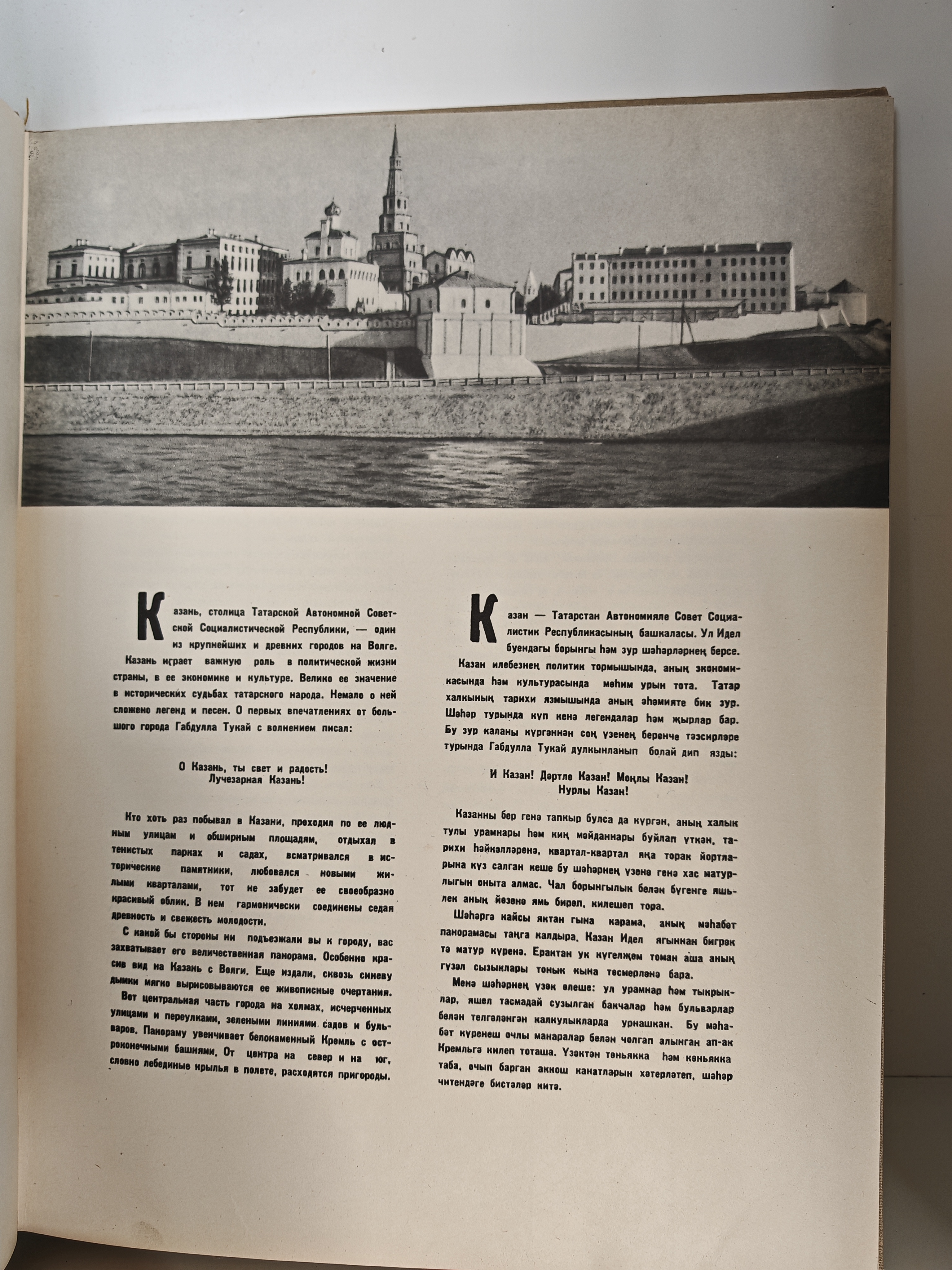 Фотоальбом знакомит читателя с неповторимым архитектурным обликом столицы Советской Татарии, с её яркой биографией. В альбоме отражено взаимовлияние двух культур и двух архитектурных начал — русского и татарского, характерных для интернационального города Казани. Содержит чёрно-белые фотографии, сделанные в конце 50-х годов XX столетия, которые передают дух того времени: монументальность, строгую простоту и величие.