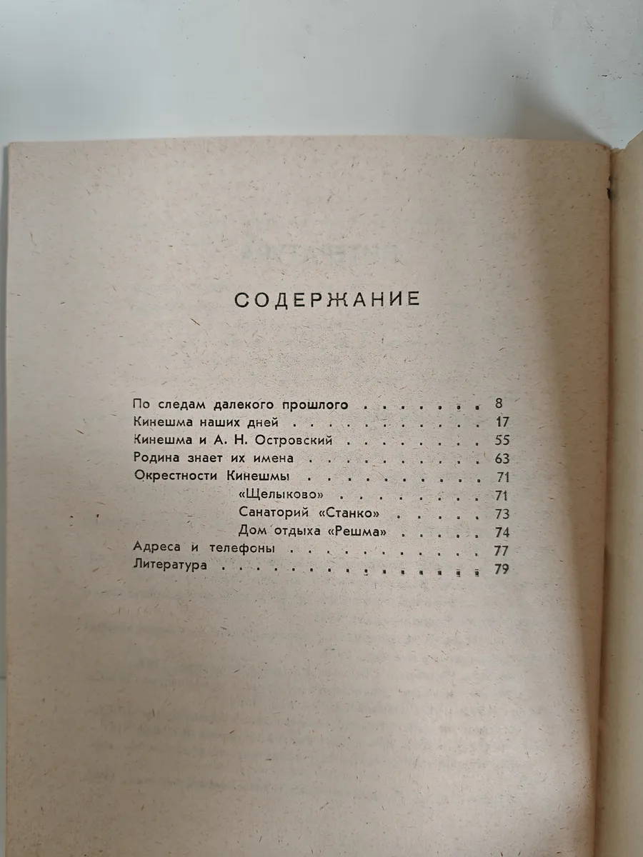 Путеводитель знакомит читателя с городом Кинешмой (Ивановская область), расположенным на берегу Волги. Город известен с XV века. В книге освещена история Кинешмы, её промышленное развитие (текстильная, химическая, машиностроительная отрасли), а также роль как крупного транспортного узла. Кроме того, издание рассказывает о знаменитых людях, которые жили и работали в городе. Также представлена информация об окрестностях Кинешмы, включая Плес (связанный с Левитаном) и Щелыково (связанный с А. Н. Островским).