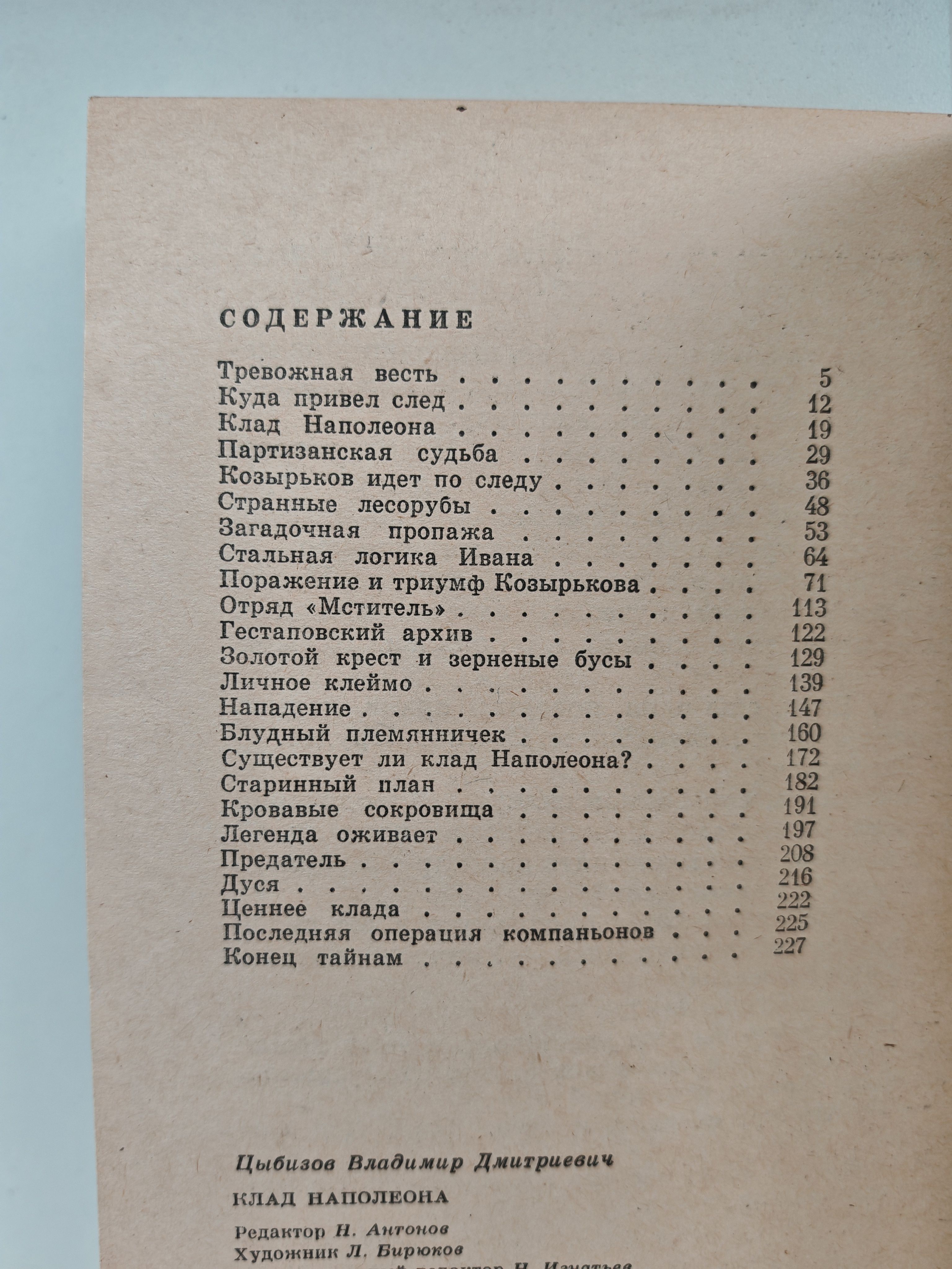 Использовав историю с «кладом», автор переносит читателя от 1812 года до периода коллективизации с его классовой борьбой, а затем и до Великой Отечественной. Владимир Дмитриевич Цыбизов — русский советский писатель, более известный произведениями нефантастических жанров, Член Союза Журналистов и Союза Писателей СССР.