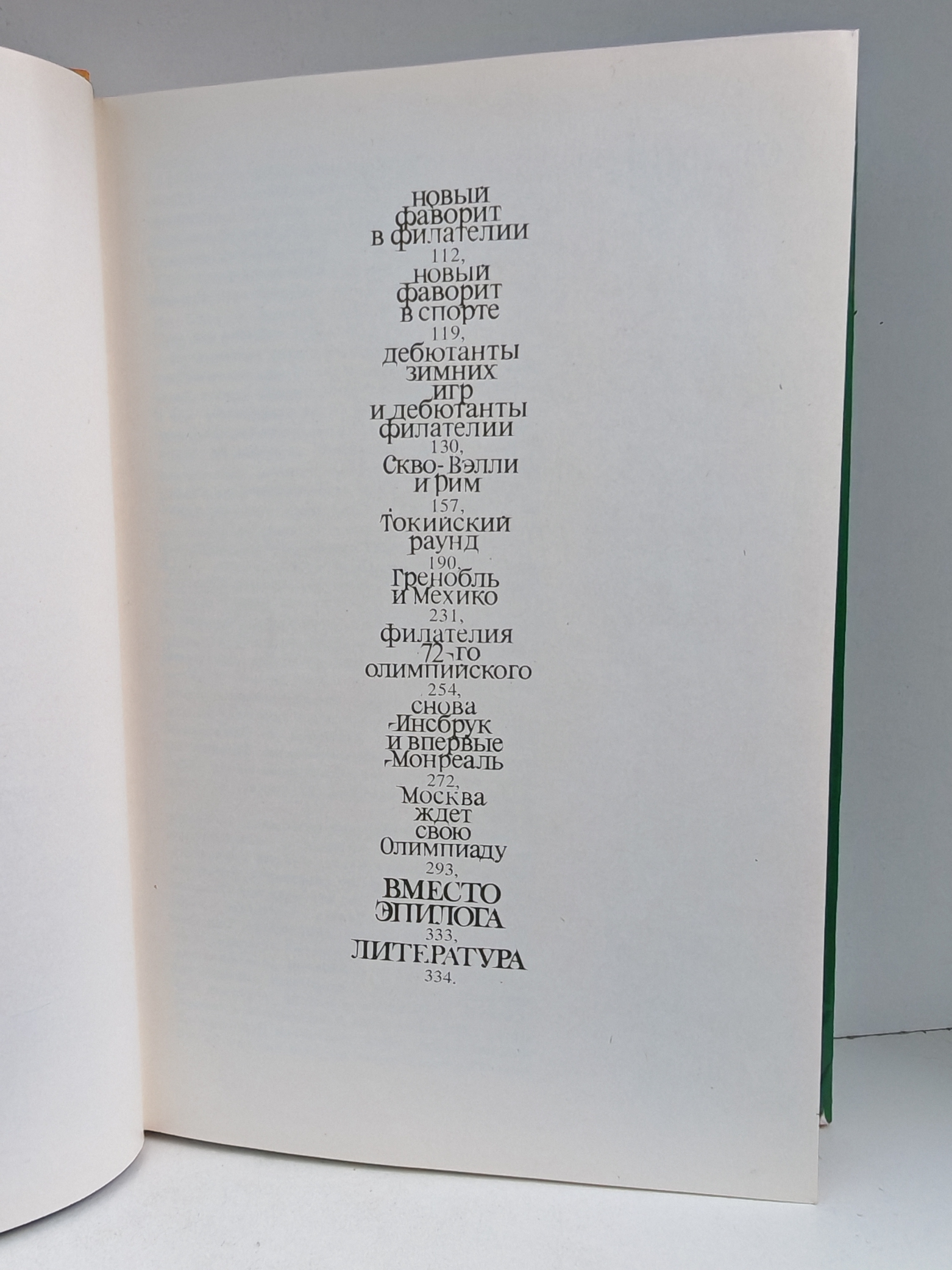 Книга посвящена одному из наиболее интересных и динамичных видов тематического коллекционирования — олимпийской филателии. В первом разделе рассказывается о выпусках, посвящённых истории античных Олимпиад, их традициям и ритуалам, олимпийской символике. Второй раздел посвящён филателистической хронике Олимпийских игр — содержит обзор наиболее интересных выпусков от марок, изданных в честь Олимпийских игр 1896 г., до почтовых миниатюр, посвящённых московской Олимпиаде 1980 г. Описываются не только почтовые марки, но и специальные штемпели, иллюстрированные конверты и почтовые карточки, цельные вещи, виньетки. Книга содержит многочисленные цветные иллюстрации. Предназначена для широкого круга филателистов.