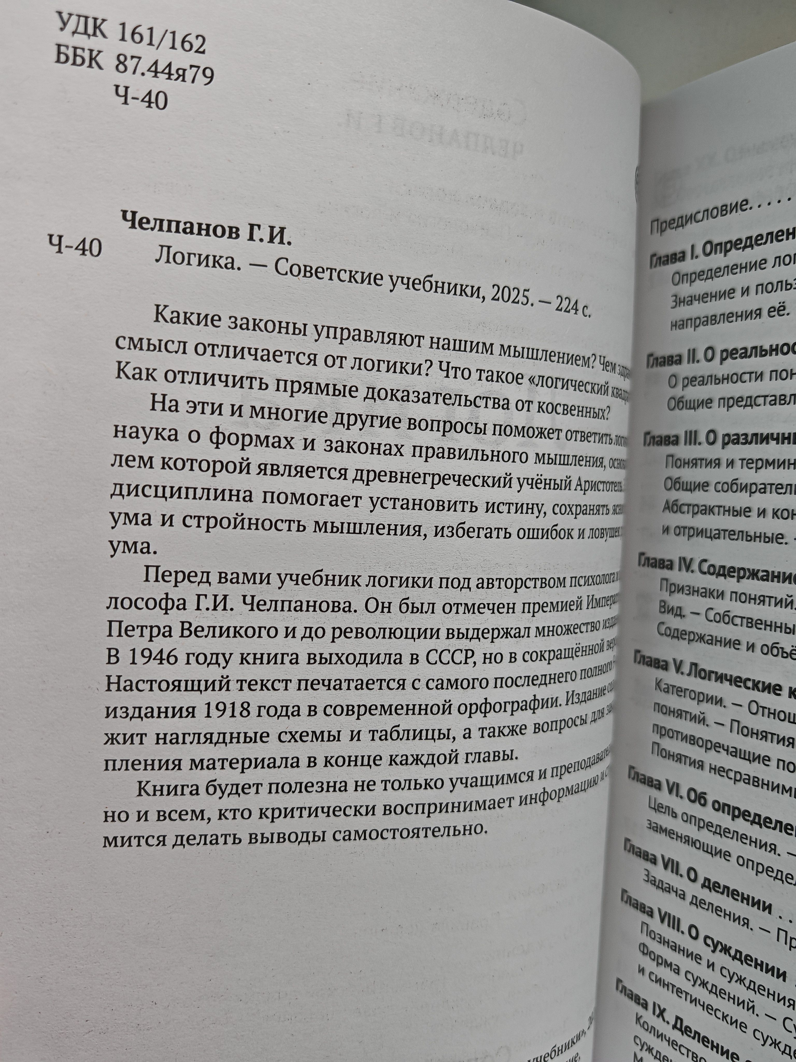 Какие законы управляют нашим мышлением? Чем здравый смысл отличается от логики? Что такое «логический квадрат» и как отличить прямое доказательство от косвенного? На эти и многие другие вопросы отвечает логика — наука о формах и законах правильного мышления, помогающая устанавливать истину, избегать ошибок рассуждения и развивать критическое мышление.Перед вами классический учебник логики под авторством психолога и философа Г. И. Челпанова, удостоенный премии Императора Петра Великого и многократно переиздававшийся до революции. В советское время книга издавалась в сокращённой версии, а настоящее издание воспроизводит последний полный текст 9-го издания 1918 года в современной орфографии.Учебник включает наглядные схемы, таблицы и логические задачи, а также вопросы для закрепления материала в конце каждой главы, что делает обучение не только понятным, но и практичным. Издание развивает аналитическое и критическое мышление, учит ясно формулировать мысли, аргументировать и видеть ошибки в рассуждениях — качества, необходимые каждому образованному человеку.Книга станет полезным пособием для учащихся, преподавателей, родителей, а также для всех, кто интересуется саморазвитием, философией и психологией мышления. Это идеальный подарок для студентов, педагогов и интеллектуалов.Пособие «Логика» подготовлено коллективом издательства «Советские учебники» с вниманием к каждой детали и уважением к оригинальным материалам. Книга восстановлена с издания 1918 года, перевёрстана с сохранением структуры и оформления, что позволяет передать атмосферу и логику подачи материала. Текст воспроизведён без сокращений, схемы перерисованы, орфография приведена в соответствие с нормами 1956 года.
