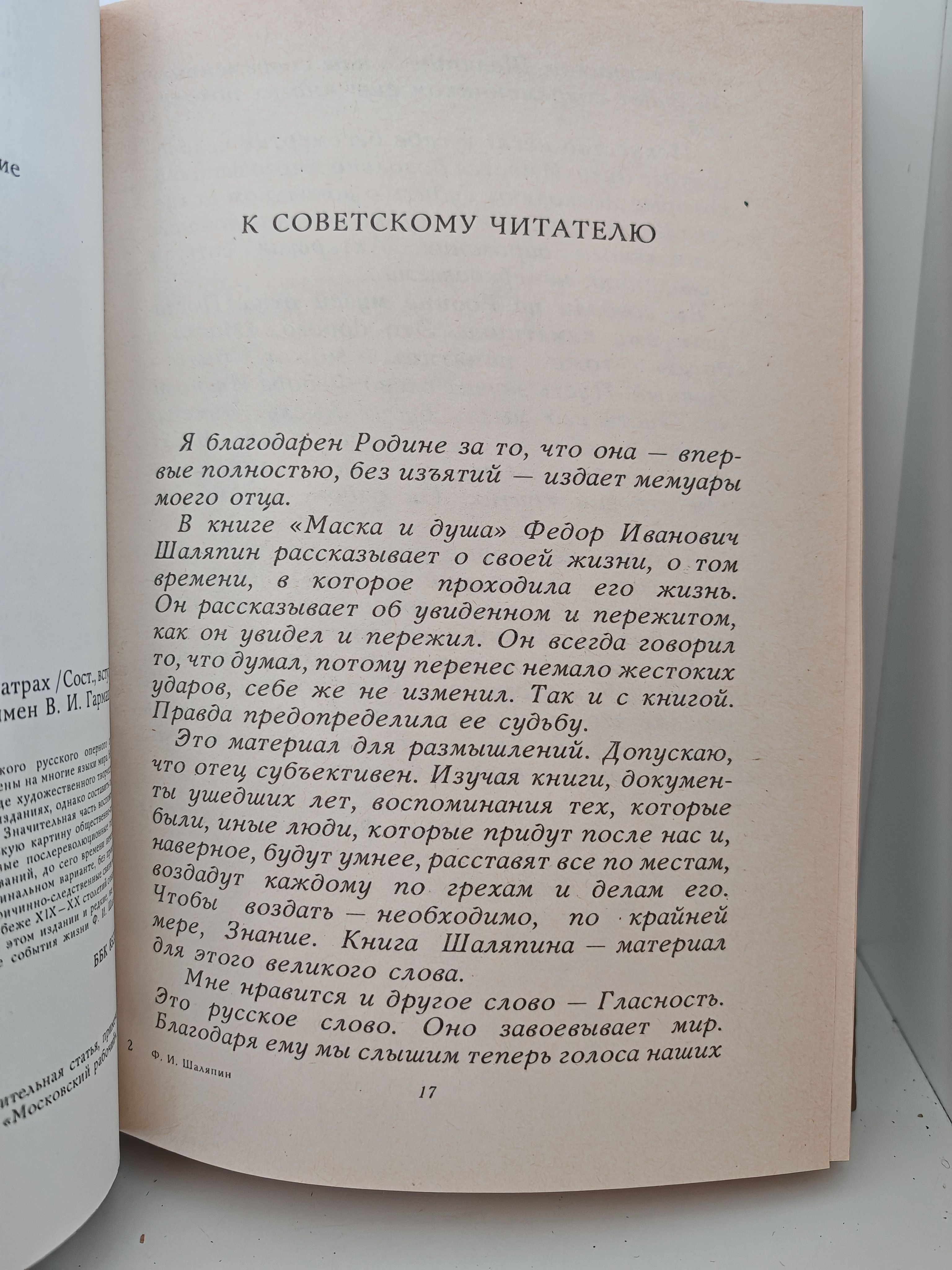 Мемуары великого оперного певца. Некоторые главы посвящены размышлением автора о природе художественного творчества. О жизни, о стране. Эти воспоминания, опубликованные в 1932 году в Париже, в нашей стране в полном объеме издаются впервые. Для громадного большинства почитателей великого русского артиста, а также для тех, кто до сих пор видит в нем "изменника родины", эта книга раскроет во многом непривычный образ Ф. И. Шаляпина, его многогранное дарование, трагическую судьбу.