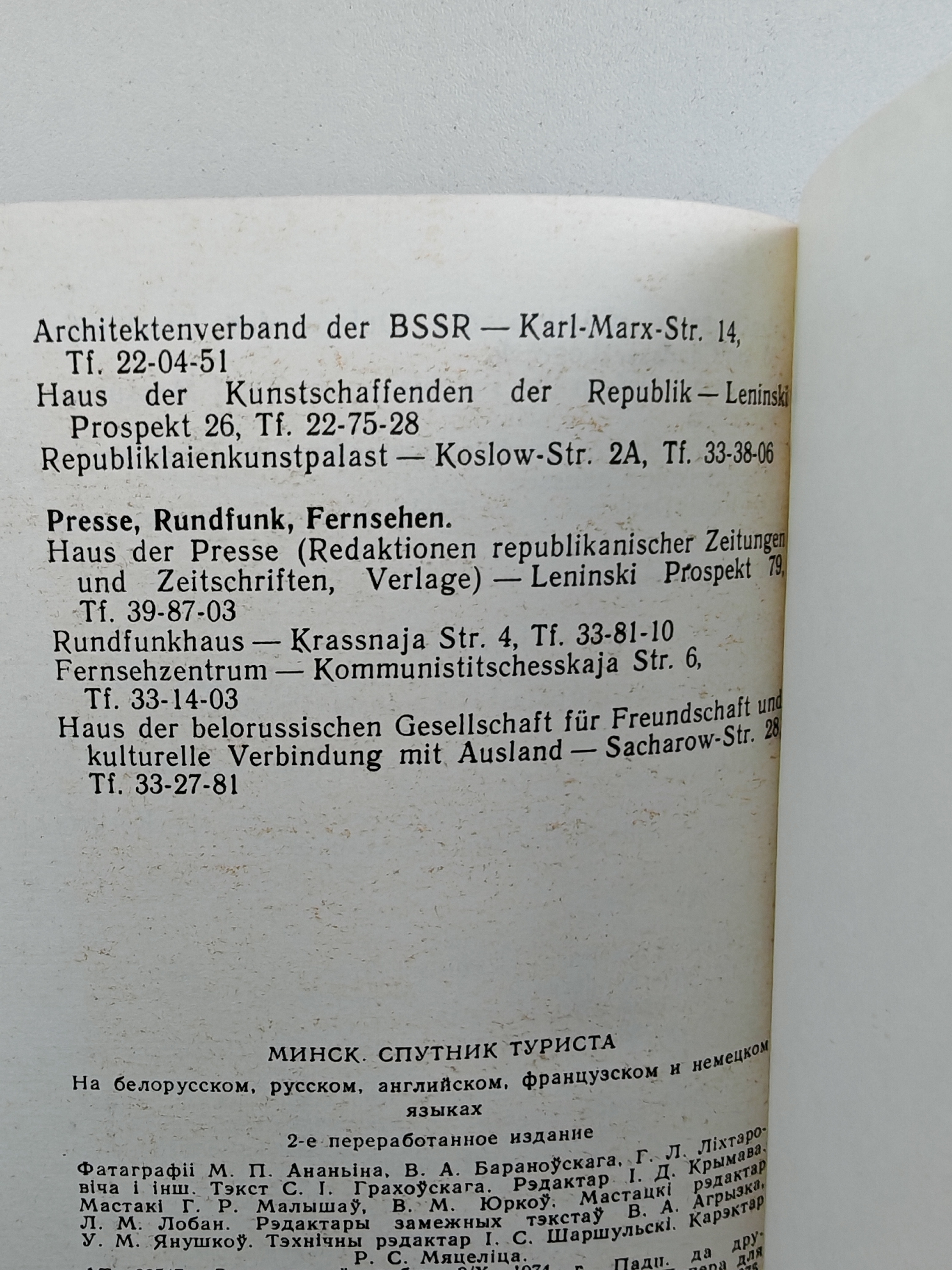 Путеводитель по столице Белорусской ССР на белорусском, русском, английском, французском и немецком языках. Содержит цветные и чёрно-белые фотографии, знакомит с архитектурой, достопримечательностями и повседневной жизнью Минска 1970-х годов. Предназначен для иностранных и отечественных туристов, интересующихся историей и культурой города. Сочетает практическую информацию (адреса, телефоны учреждений) с культурно-историческими очерками.