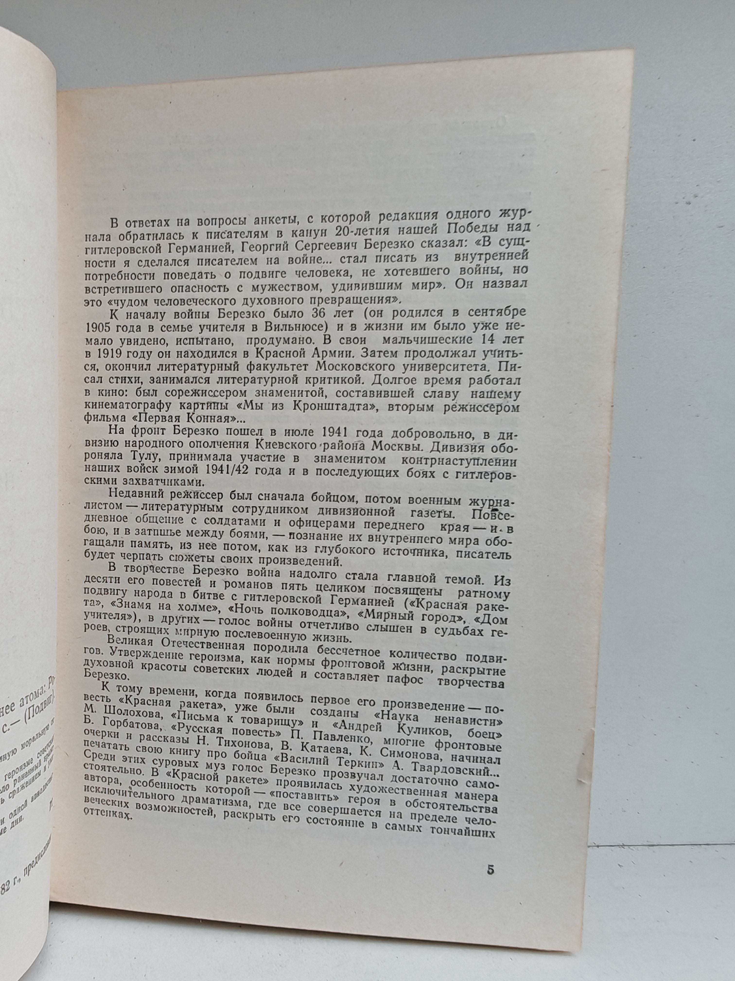 В своих произведениях автор показывает огромную моральную силу Советской Армии — оплота мира. Повесть «Ночь полководца» — о мужестве и героизме советских воинов в годы Великой Отечественной войны. Тяжело раненный вражеской пулей генерал Рябинин продолжает руководить сражением и умирает на боевом посту. В романе «Сильнее атома» рассказано о жизни одной авиадесантной дивизии, службе и быте парашютистов в мирные дни.