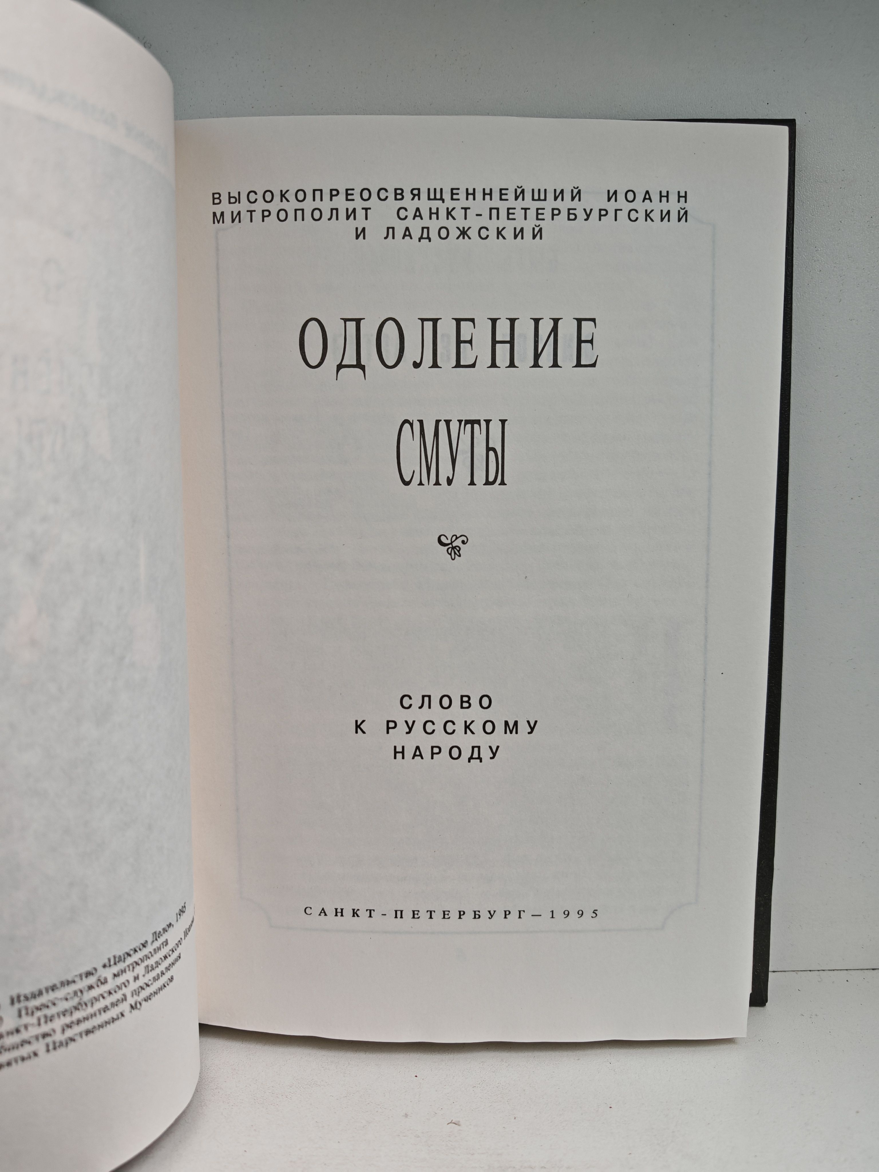 Нынешние тяжелейшие времена смуты и безначалия, трагедия унижения некогда великой Державы, разграбления страны и народа, отданного на откуп лжеучителям и слепым вождям — это темы многочисленных выступлений митрополита Санкт-Петербургского и Ладожского Иоанна на страницах всероссийской печати. Все вышедшие за последние три года (1992—1994) публикации: очерки, статьи и интервью—вошли во вторую книгу владыки Иоанна "Одоление смуты", выпущенную издательством "Царское Дело" в серии "Духовное возрождение Отечества". В чем смысл русской истории? Есть ли враги у национальной России? Как осуществляется в нашей многострадальной стране "тайна беззакония"? Что необходимо сделать, чтобы возродить самосознание русского народа, величие и мощь Святой Руси? Ответы на эти и другие вопросы читатель найдет в предлагаемой книге.