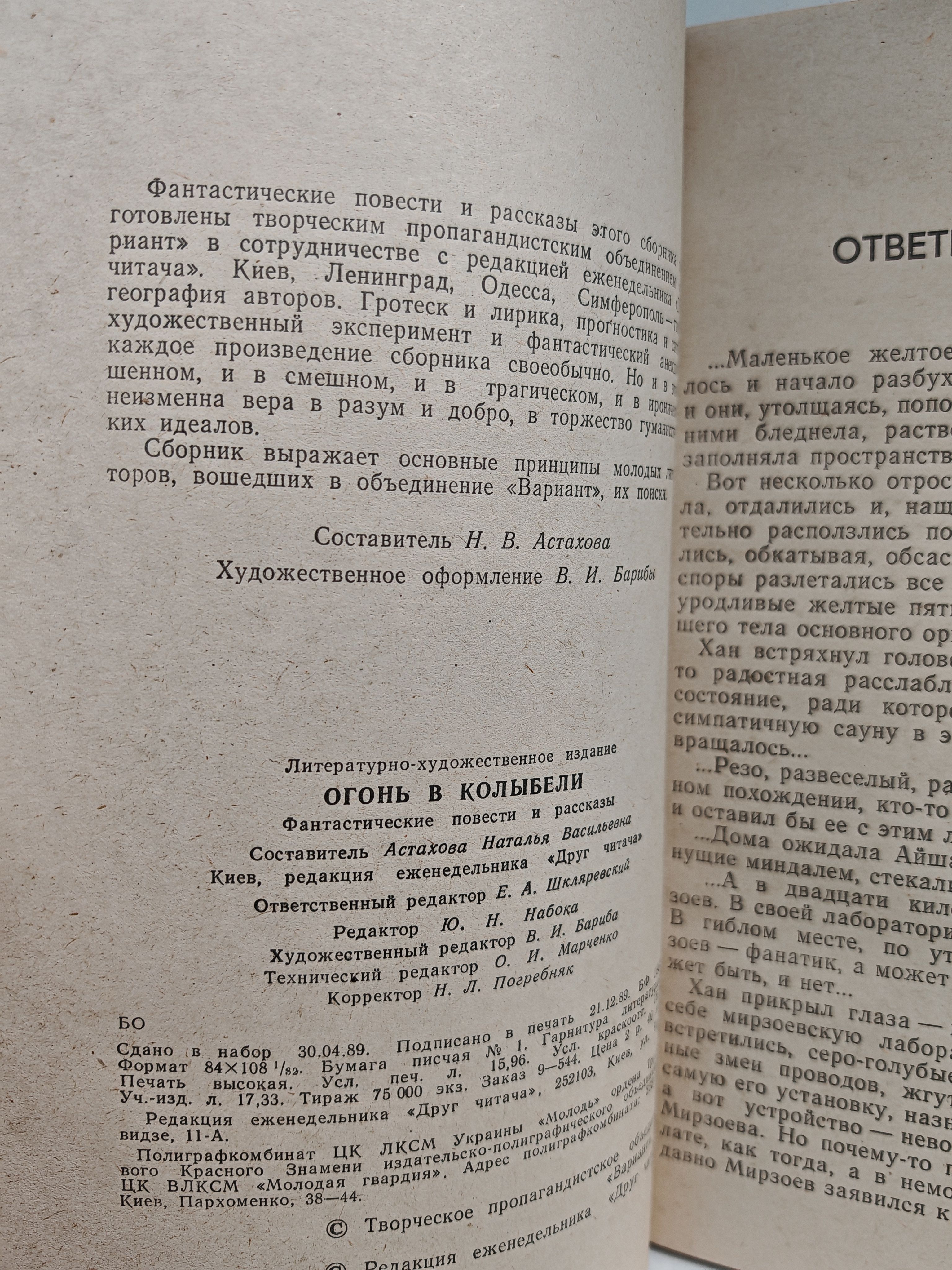Фантастические повести и рассказы этого сборника подготовлены творческим пропагандистским объединением "Вариант". Гротеск и лирика, прогностика и сатира, художественный эксперимент и фантастический анекдот - каждое произведение в сборнике своеобычно. в книгу вошли произведения авторов: Ю. Иваниченко, Л. Козинец, Н. Гайдамака, Л. Вершинин, С. Логинов, Н. Астахова, И. Сергиевская и другие.