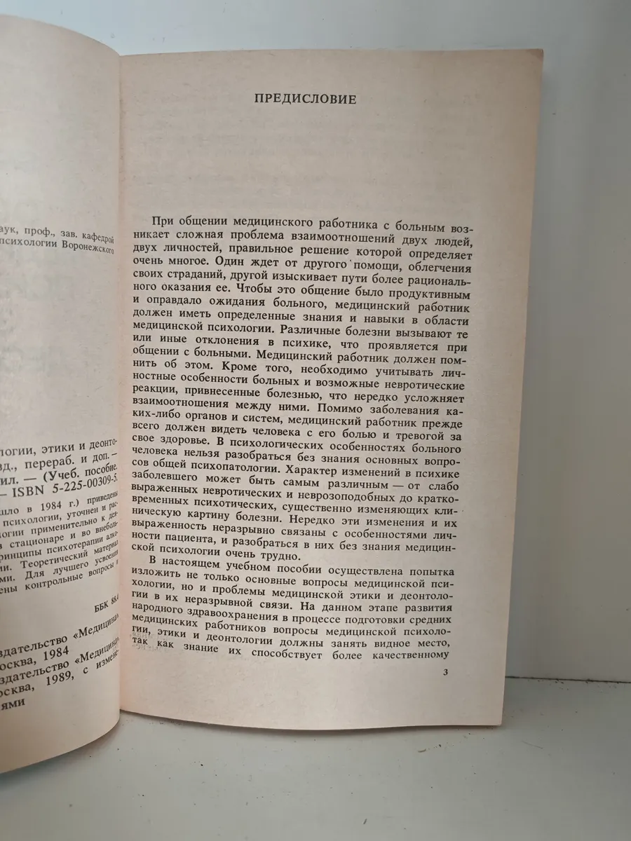 Пособие вышло в двух изданиях. Первое издание опубликовано в 1984 году, второе (переработанное и дополненное) — в 1989 году. Во втором издании учтены новейшие на тот момент данные по медицинской психологии, расширены разделы о работе медицинских работников в стационаре и на амбулаторном приёме.