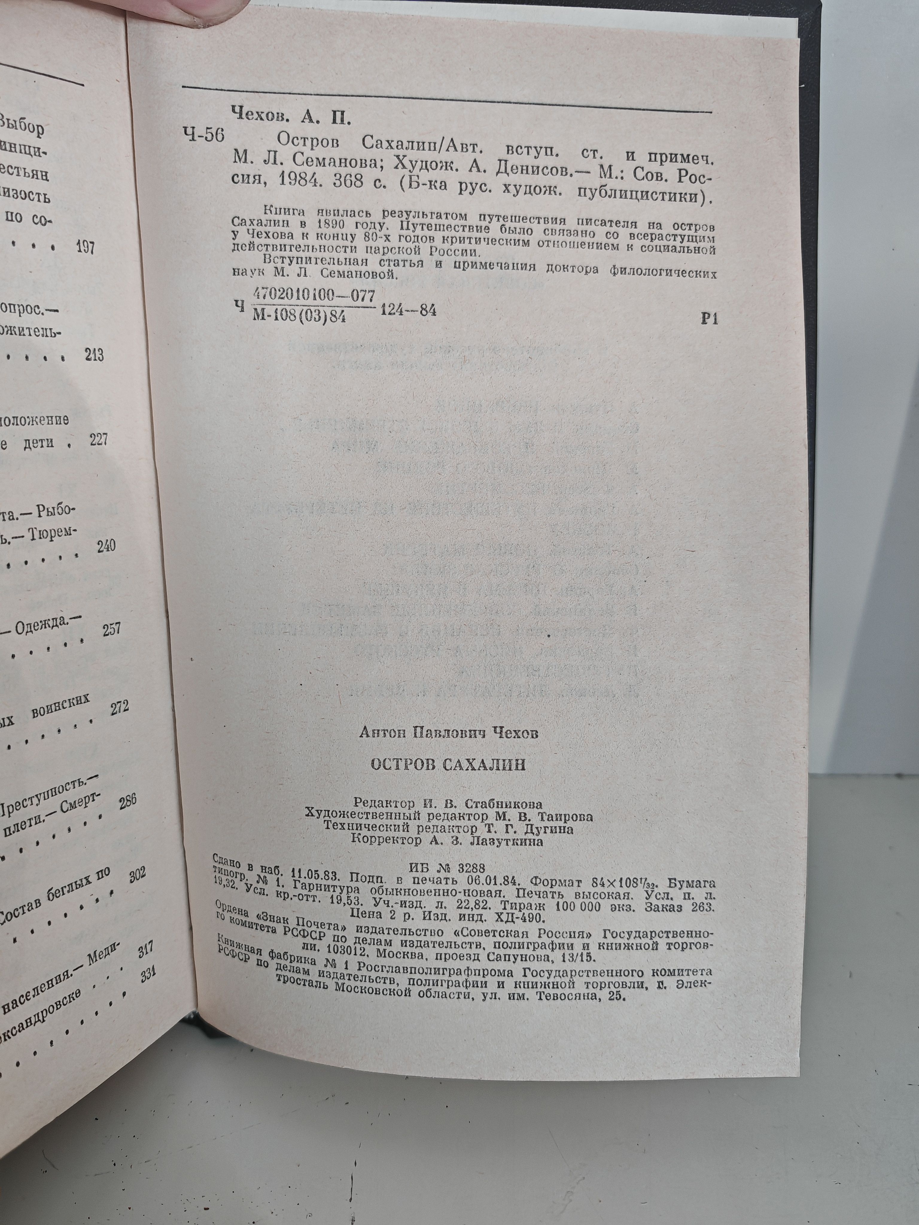 Художественно-публицистическая книга явилась результатом путешествия писателя на остров Сахалин в 1890 году. В "путевых заметках" А.П.Чехова о каторжном в то время острове художественные зарисовки соседствуют с подлинными документами, статистическими данными, с цитатами из трудов путешественников, ботаников, зоологов, этнографов, тюрьмоведов. Писателю удалось очень подробно познакомиться с жизнью и бытом поселенцев и каторжан благодаря тому, что он в течение трех месяцев работал на Сахалине переписчиком населения.