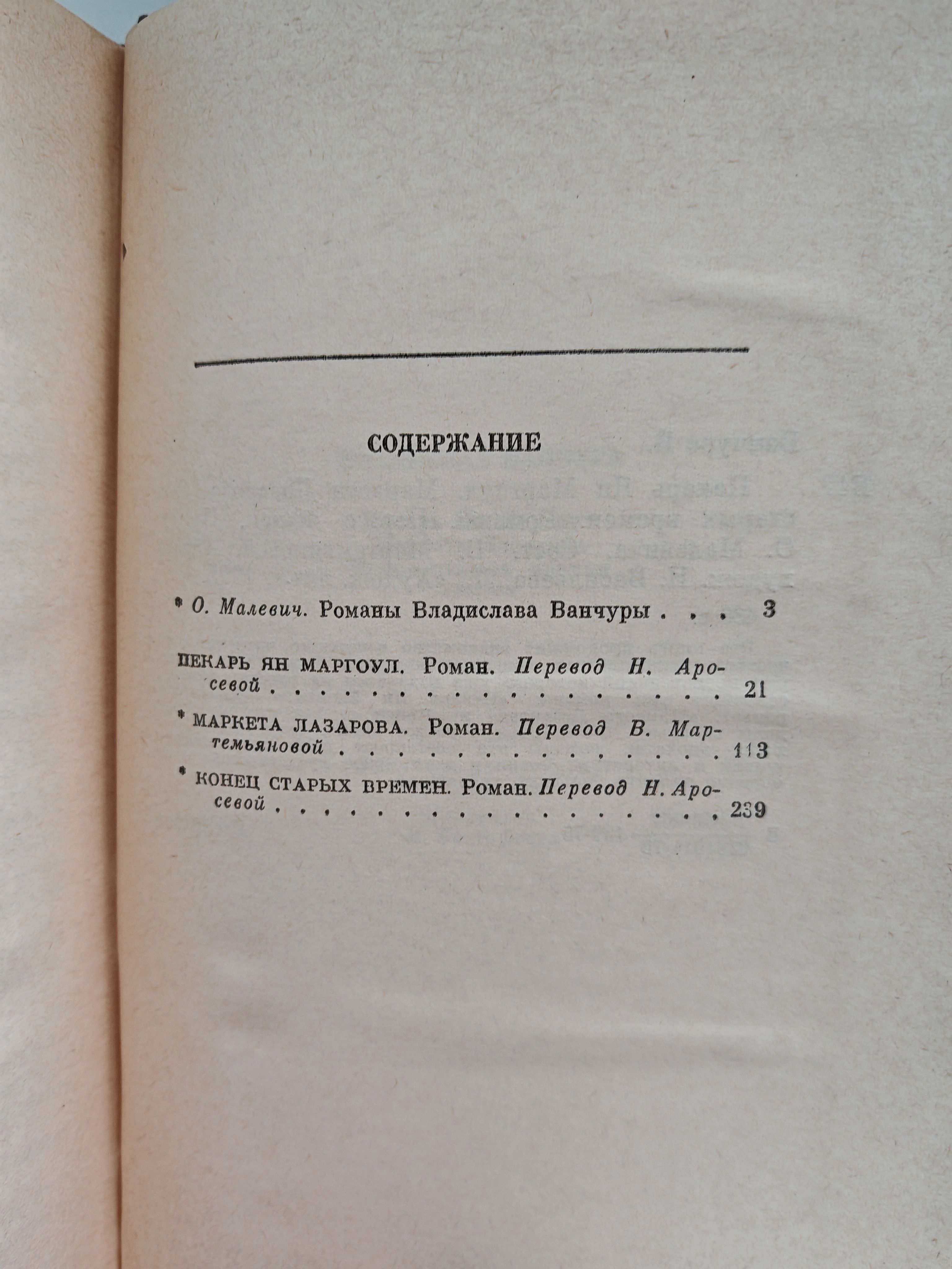 Том содержит три романа Владислава Ванчуры: "Пекарь Ян Маргоул", "Маркета Лазарова" и "Конец старых времен". Написанные в разное время, соотнесенные с разными эпохами, романы эти обогащают наше представление о жизни и литературе Чехии и дают яркое представление о своеобразии таланта большого художника.