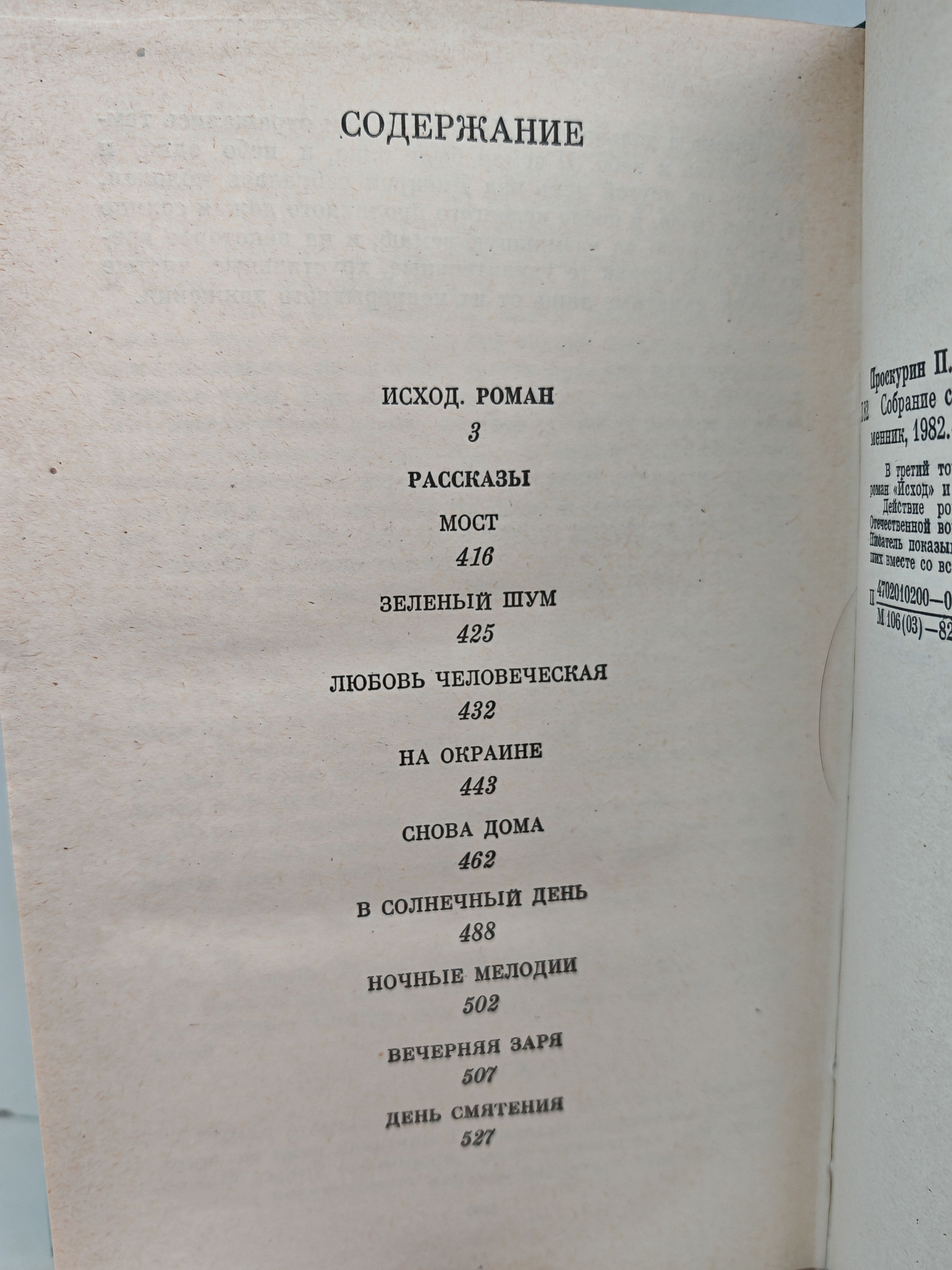 В третий том собрания сочинений Петра Проскурина вошли роман "Исход", и рассказы разных лет. Действие романа "Исход" разворачивается в годы Великой Отечественной войны на оккупированной гитлеровцами территории. Писатель показывает трудные и высокие судьбы людей, одержавших вместе со всем советским народом победу над фашизмом.