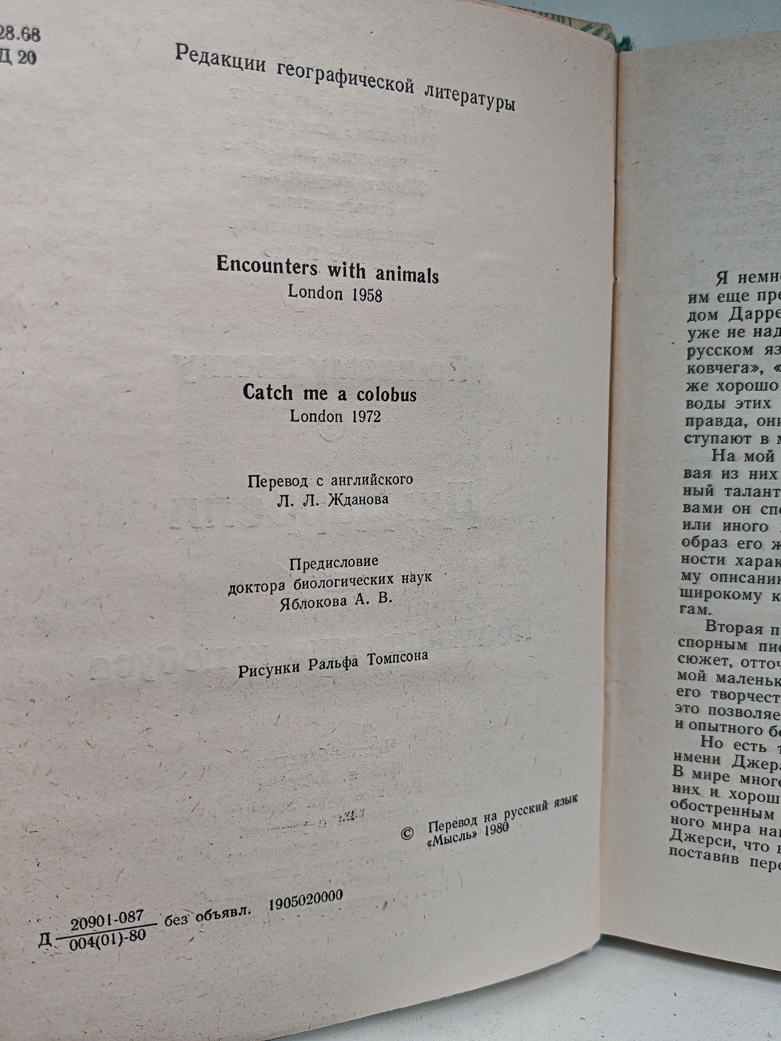 Известный английский писатель и зоолог в своих книгах "По всему свету" и "Поймайте мне колобуса" описывает свои путешествия в различные страны земного шара. Полные богатого фактического материала, написанные живо и остроумно, книги Даррелла проникнуты идеей охраны окружающей среды.
