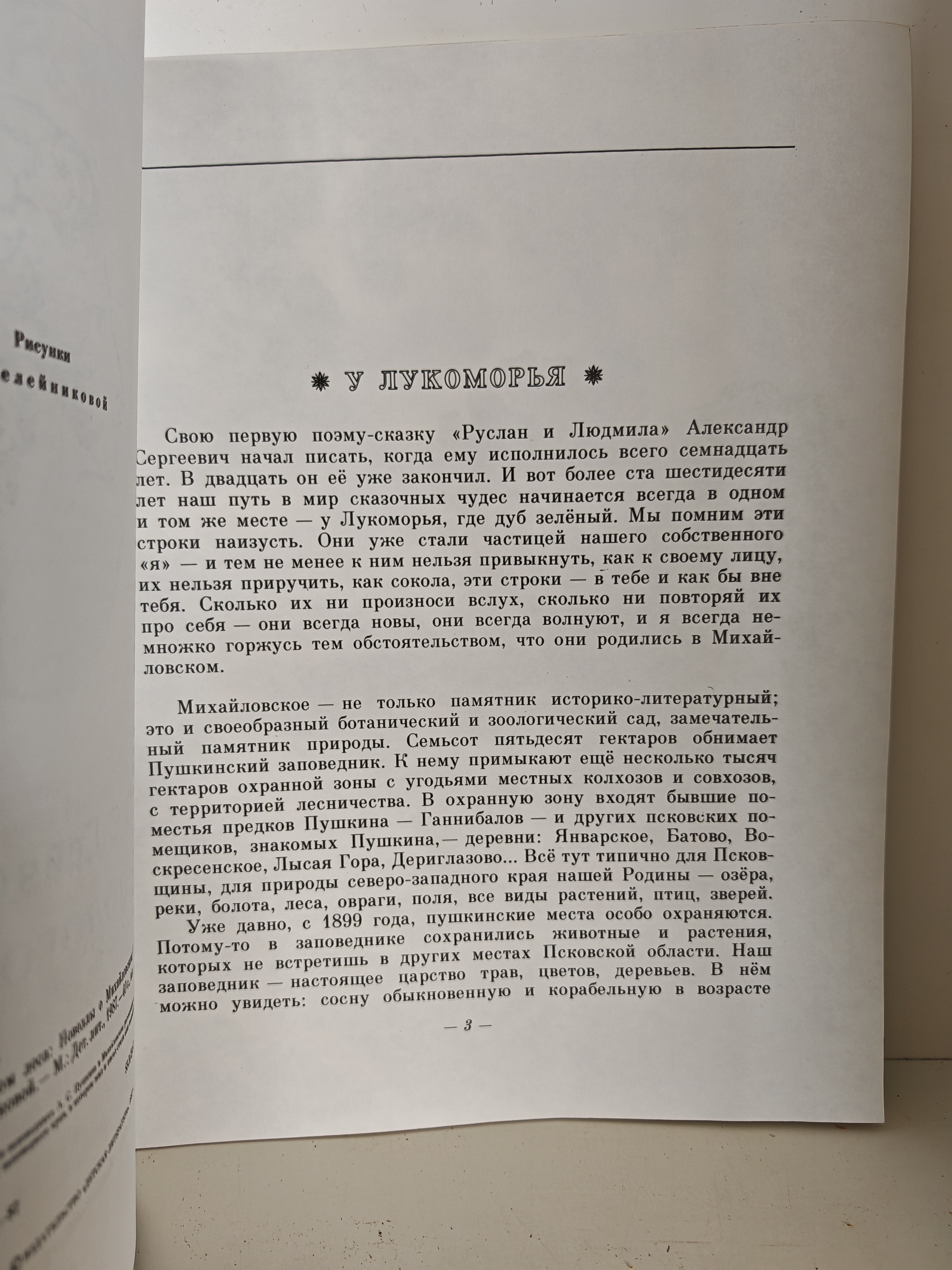 Хранитель музея-заповедника А. С. Пушкина в Михайловском рассказывает о природе и животных заповедного края, в котором жил и писал стихи великий поэт. Книга предназначена для младшего и среднего возраста.
