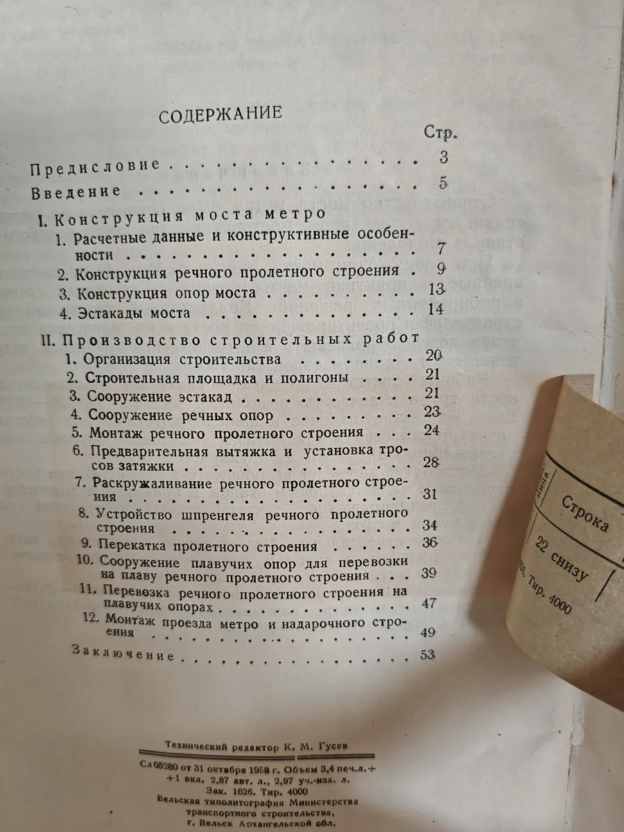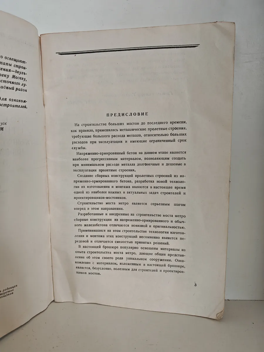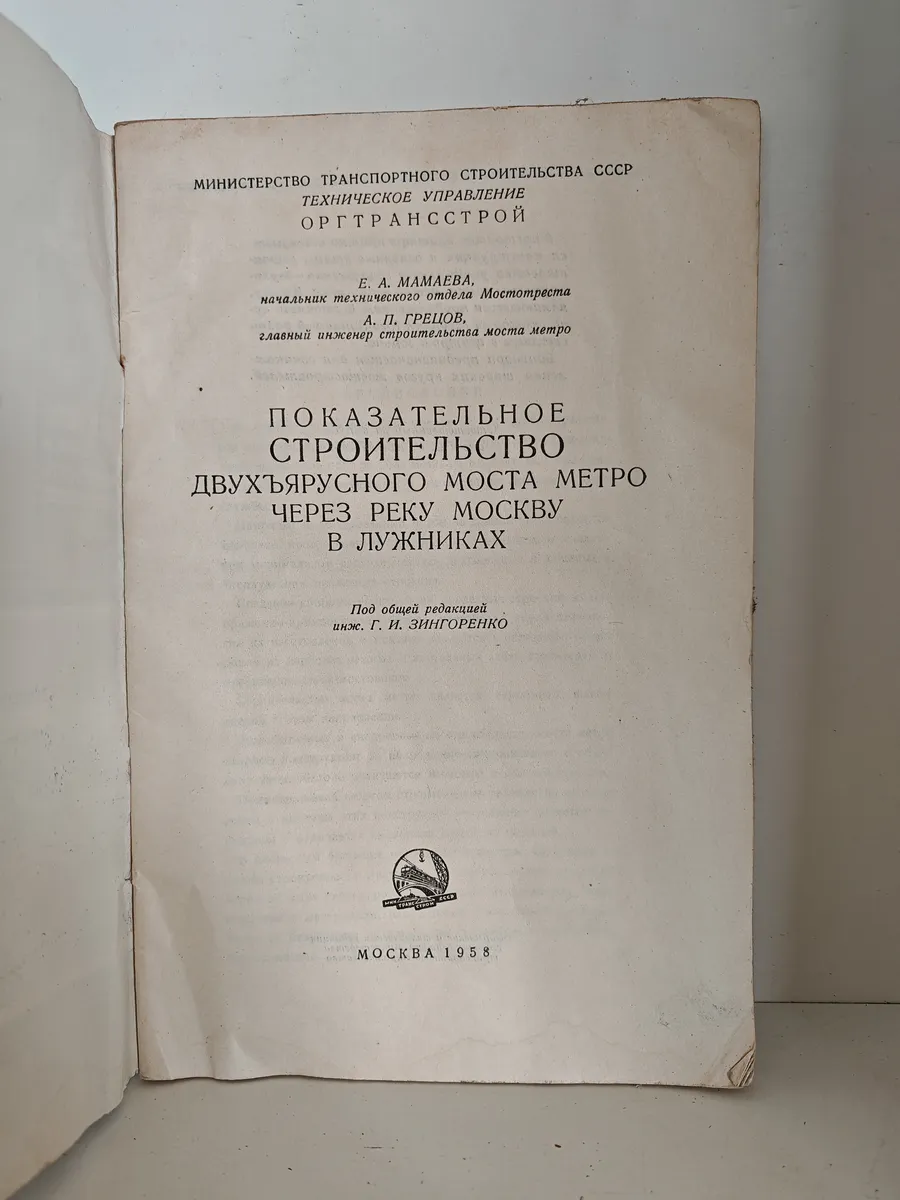 Книга выпущена в рамках документации показательного строительства одного из знаковых инженерных объектов Москвы 1950-х годов — двухъярусного метромоста в Лужниках. Проект реализован в рекордно короткие сроки (19 месяцев), стал первым двухъярусным мостом в Москве: в нижнем ярусе расположена станция метро «Ленинские горы» (ныне «Воробьёвы горы»), верхний ярус — автомобильный. Брошюра фиксирует инженерные решения и опыт строительства для профессионального сообщества.