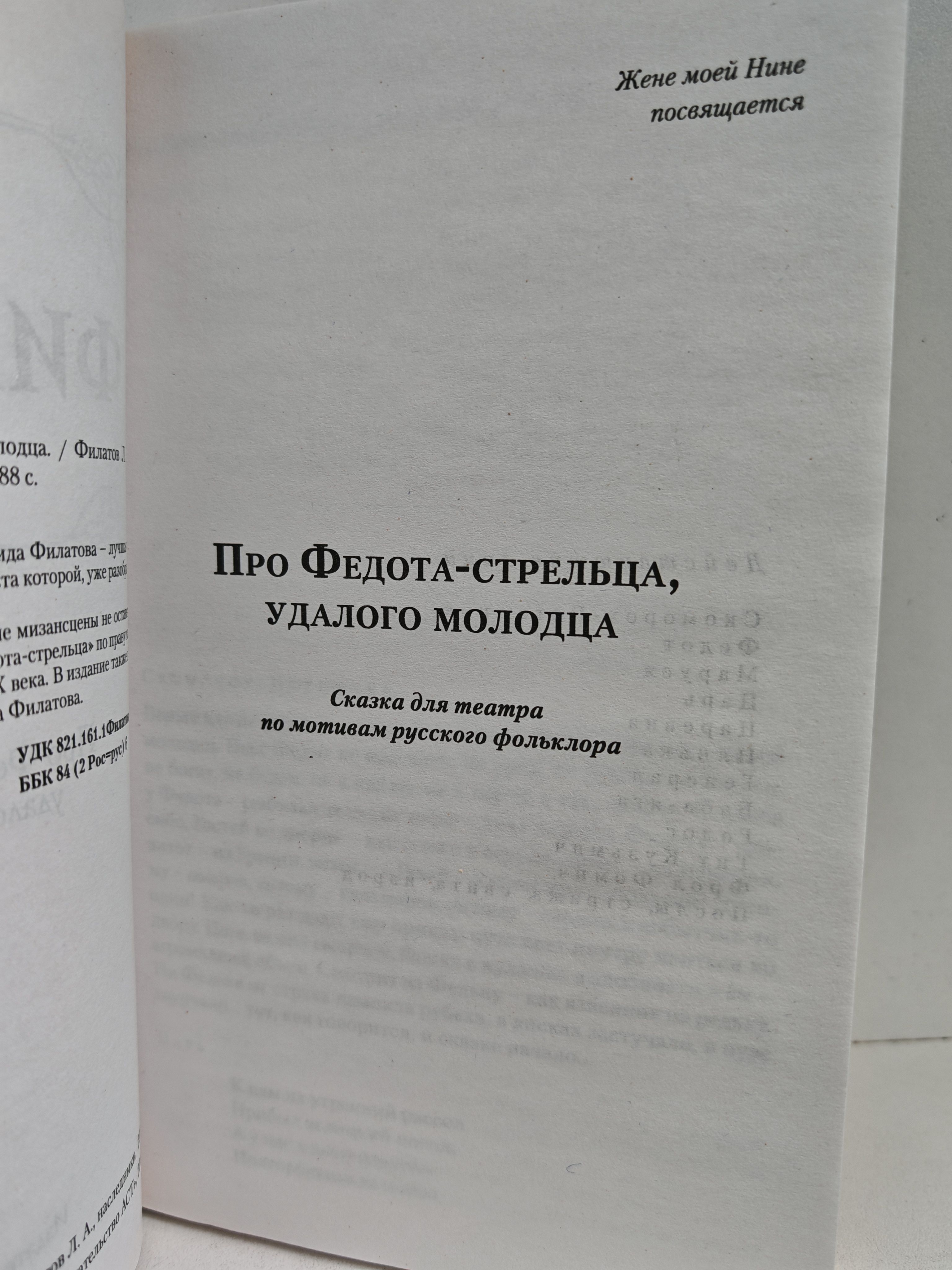 Сказка современного классика Леонида Филатова – лучшая книга для семейного чтения, половина текста которой, уже разобрана на афоризмы и анекдоты. Характерные персонажи, остроумные мизансцены не оставят никого равнодушным. Сказку "Про Федота-стрельца" по праву можно назвать одной из самых ярких книг XX века. В издание также включены и другие пьесы и сказки Леонида Филатова.