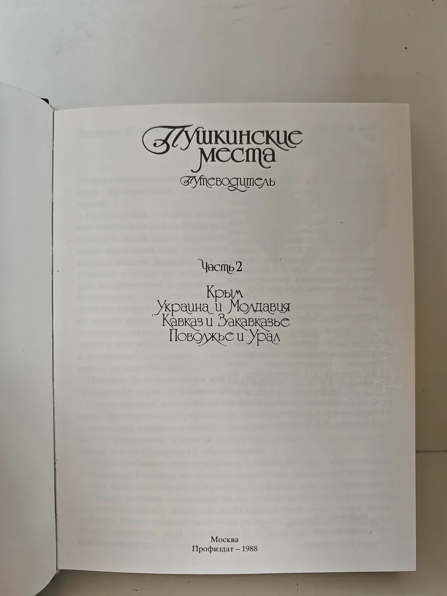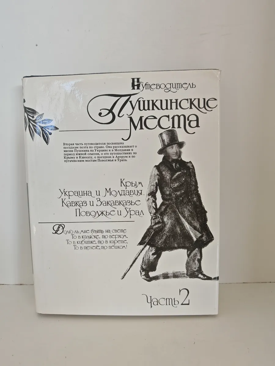 Вторая часть путеводителя знакомит с памятными местами жизни и творчества А. С. Пушкина. В книге рассказывается о поездках поэта в Крым и на Кавказ летом 1820 года и в 1829 году, его жизни на Украине и в Молдавии, а также о связях Пушкина с Поволжьем, Уралом, Кавказом и Закавказьем. Содержит разделы: «Поездки Пушкина», «Крым», «Украина и Молдавия», «Кавказ и Закавказье», «Поволжье и Урал», а также справочные материалы для туристов, указатели имён современников Пушкина и географических названий.