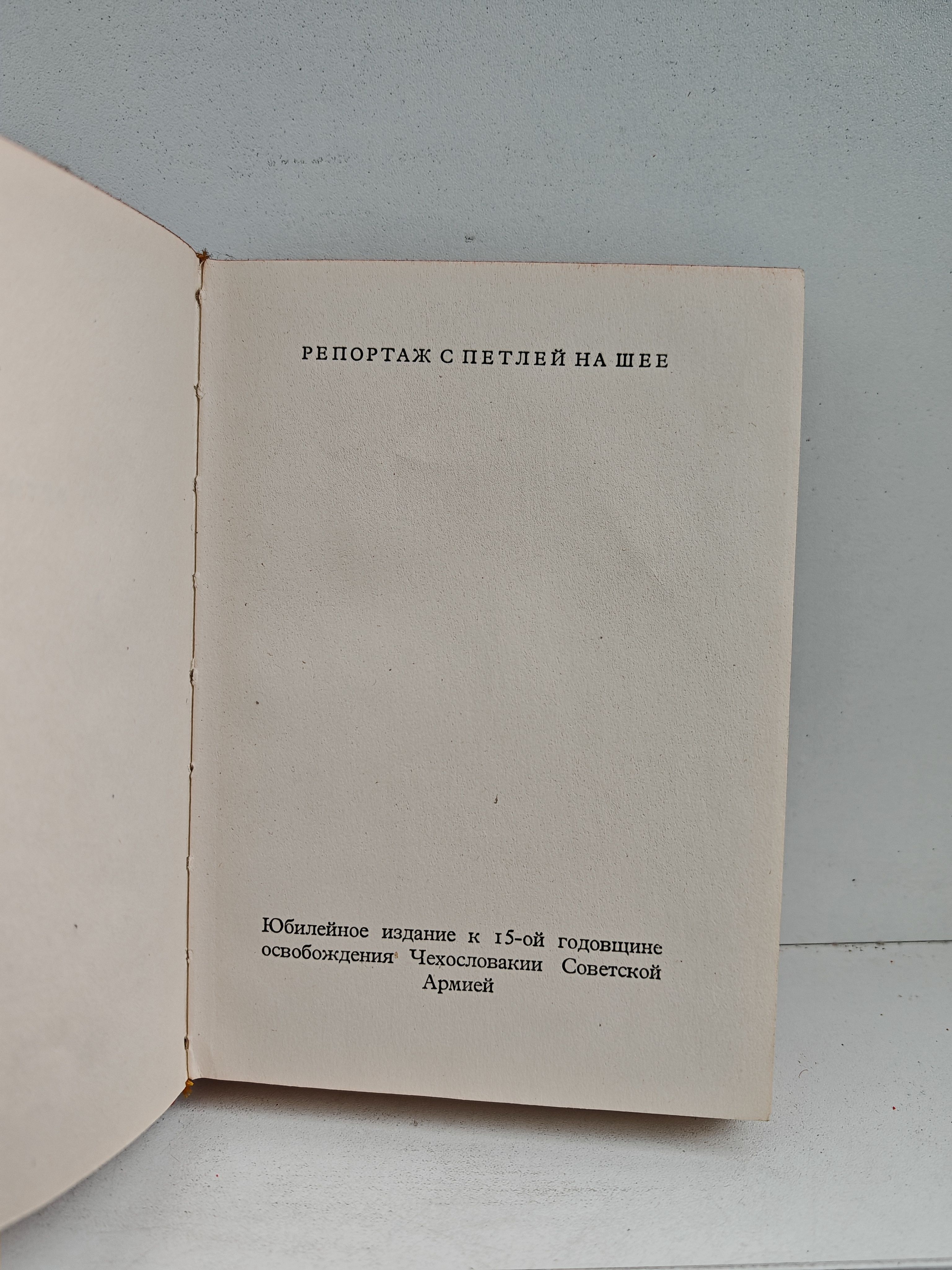 Юбилейное издание к 15-ой годовщине освобождения Чехословакии Советской Армией. Роман написан в тюрьме Гестапо в Панкраце весной 1943 года.