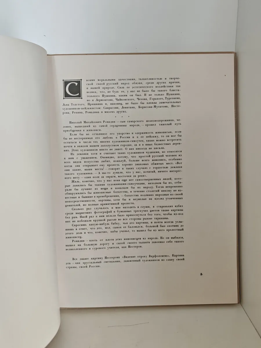 Книга посвящена анализу творчества художника Н. М. Ромадина, с особым акцентом на его лирические пейзажи, отражающие красоту родной природы. Текст написан К. Г. Паустовским, который восхищался творчеством Ромадина, называя его полотна «поэмой о России». В книге раскрываются особенности видения художником природы, его умение передавать не только внешний облик пейзажа, но и его душу, атмосферу, эмоции. Сопровождается иллюстрациями работ Н. М. Ромадина.