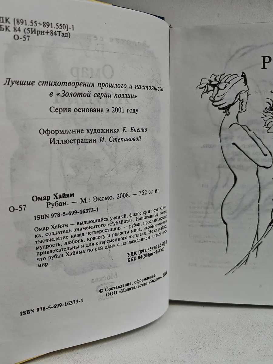 Рубаи Омара Хайяма создавались в XI веке и со временем стали одним из самых узнаваемых поэтических наследий Востока. Сборник, представленный в данном издании (издательство «Эксмо», 2008 г.), — результат компиляции и редакционной работы для популяризации классического наследия среди широкой аудитории. Серия, в которую входит книга, основана в 2001 году с целью познакомить читателей с великими поэтическими произведениями.
