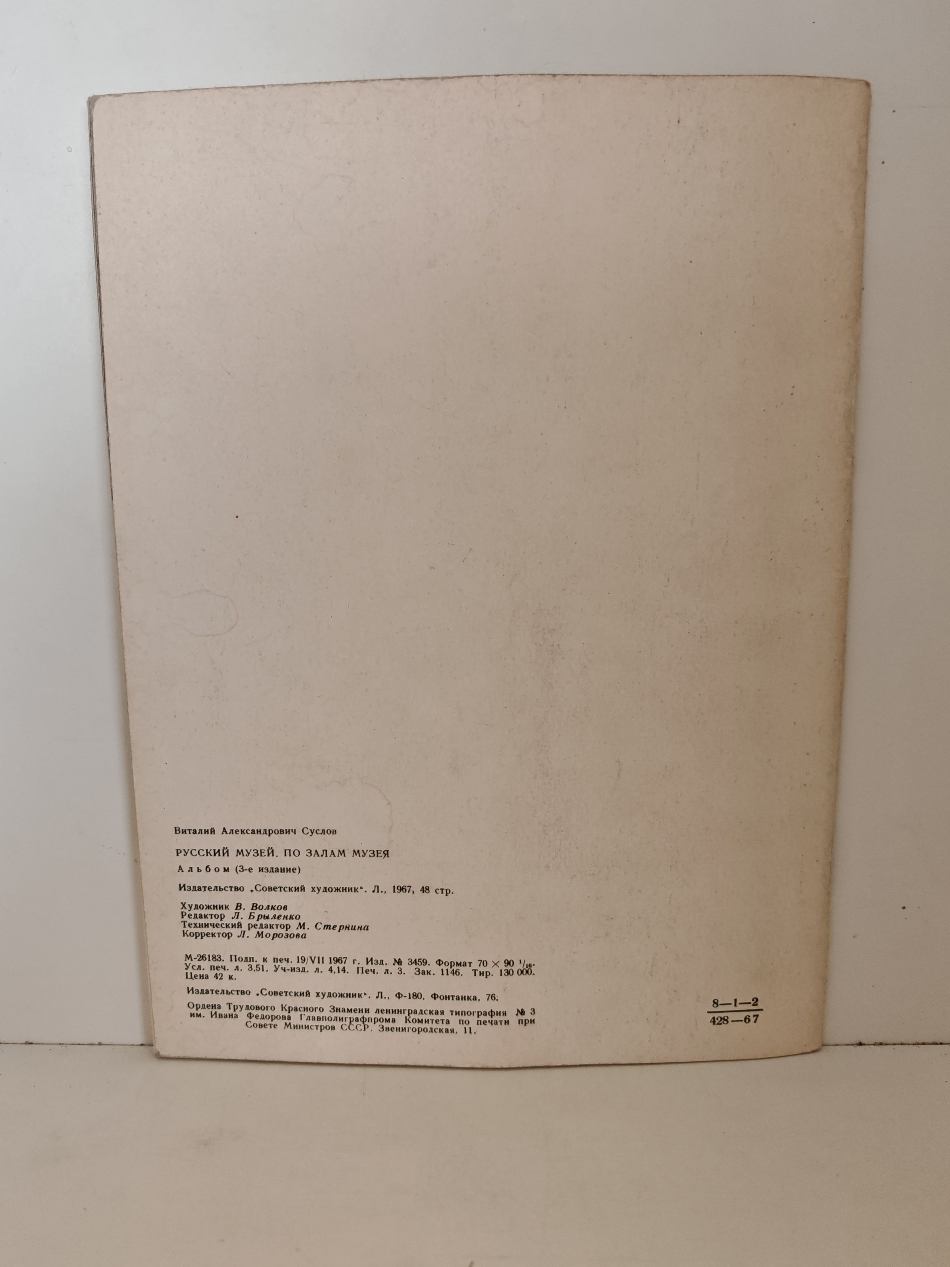 Книга вышла в 1967 году — в период активного развития культурно-просветительской литературы в СССР. На тот момент Виталий Суслов занимал пост заместителя директора по науке в Русском музее (до перехода в Эрмитаж в том же году).