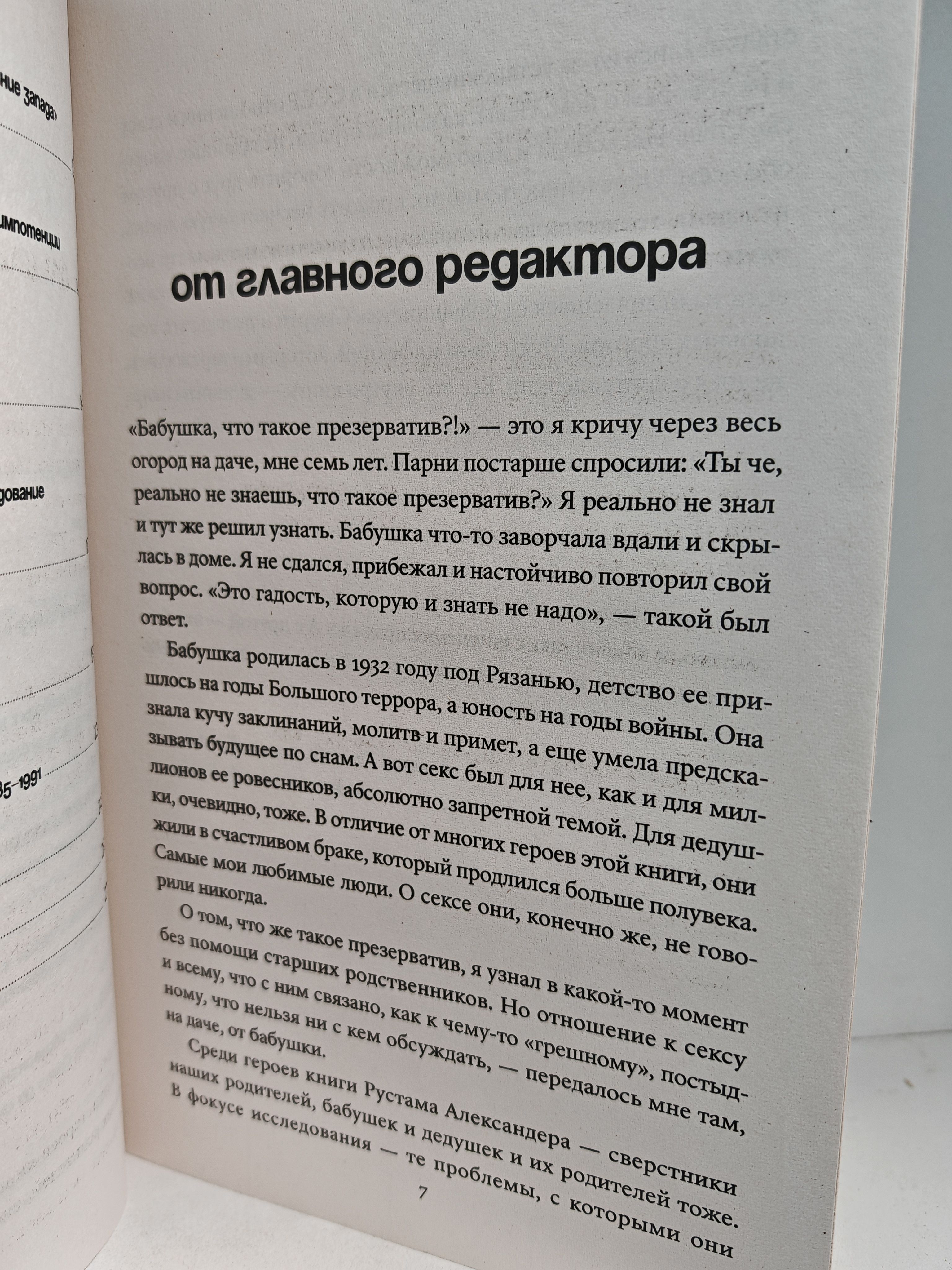 Советские рабочие 1920‑х рассуждают о поллюциях. Шахтеры 1960‑х интересуются петтингом. Архангельских девушек судят за романы с иностранцами в 1940‑е. Московский фестиваль молодежи и студентов становится локальной сексуальной революцией. На основе архивных материалов, воспоминаний и врачебных записей историк Рустам Александер создал объемную картину сексуальной жизни СССР. Объединяет все истории общий сюжет о том, как запреты абортов, отсутствие просвещения и навязывание ханжеского пуританства приводят к росту невежества, насилия и смертности. И как при этом люди находят в себе смелость внутри тоталитарной системы призывать к либерализации законов, секспросвету и открытым разговорам о сексуальности.