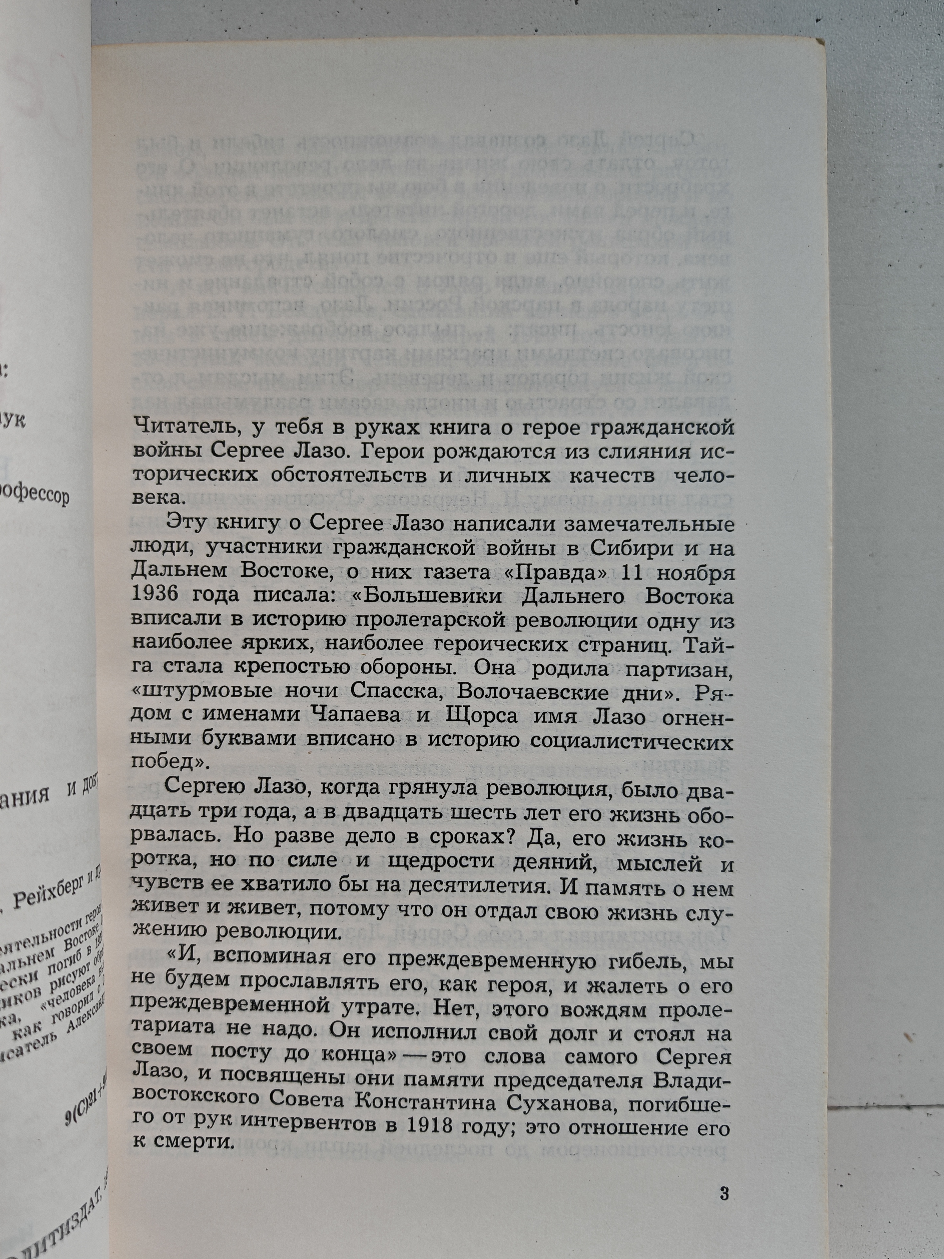 Сборник воспоминаний и документов, посвящённых жизни и деятельности героя Гражданской войны в Сибири и на Дальнем Востоке — Сергея Георгиевича Лазо (1894–1920), который героически погиб в 1920 году. Воспоминания друзей и соратников рисуют образ мужественного и гуманного человека, человека высокой рыцарской чести и благородства. В книге собраны уникальные свидетельства современников и исторические материалы, позволяющие глубже понять роль Лазо в революционных событиях и становлении советской власти на Дальнем Востоке.