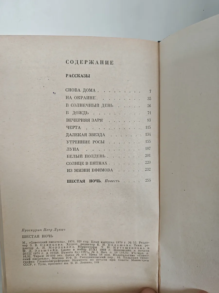 География рассказов Петра Проскурина очень обширна - Брянщина, Амур, Камчатка. Писатель пристально следит за своими героями в сфере их общественной и частной жизни. Рассказы остросюжетны, люди показаны в те главные моменты их жизни, когда они должны принимать важные для себя и для окружающих решения. Действие многих рассказов происходит в наши дни, часть из них посвящена военной поре. В образах героев, увиденных писателем то в обыденных, то в необычных ситуациях, воплощается нравственная сила народа. Обо всём этом и не только в книге Шестая ночь (Петр Проскурин)