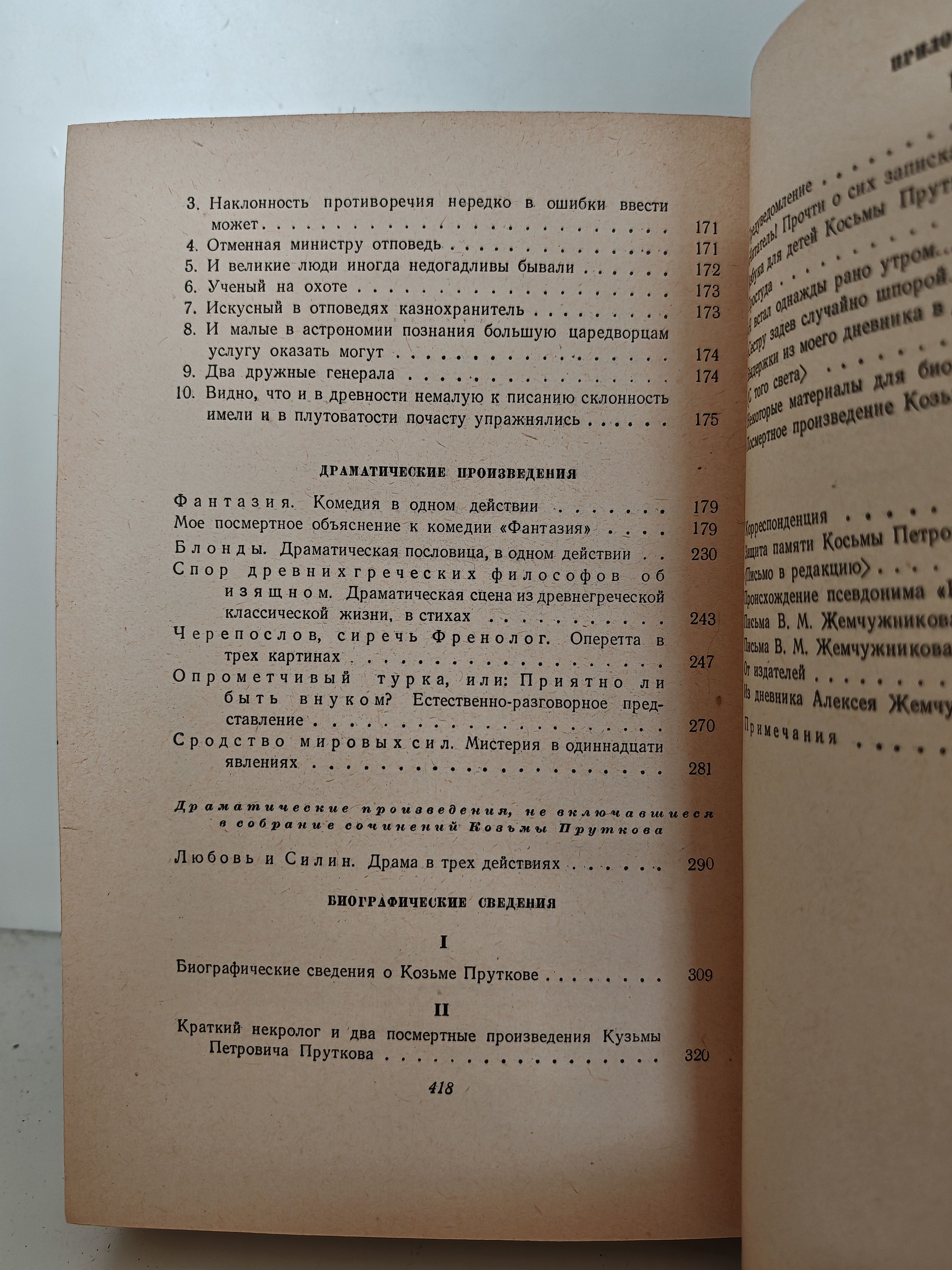 Сборник сочинений Козьмы Пруткова — литературного персонажа-мистификации XIX века, ставшего символом сатиры и пародии в русской литературе. В книгу вошли стихи, басни, афоризмы, комедии и литературные пародии, высмеивающие мнимое величие, консерватизм мысли и эпигонство в литературе. Многие произведения Пруткова стали фразеологизмами («Смотри в корень!», «Бди!», «Нельзя объять необъятного», «Если хочешь быть счастливым, будь им» и др.). Издание включает не только прижизненные, но и «посмертные» произведения персонажа, а также биографические материалы, статьи, письма и дневниковые записи, связанные с его образом. Предваряет книгу знаменитый портрет Козьмы Пруткова, созданный художниками Л. М. Жемчужниковым, А. Е. Бейдеманом и Л. Ф. Лагорио в 1853–1854 гг.