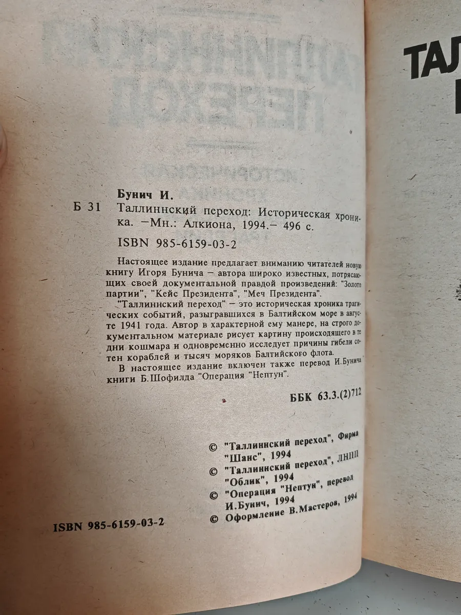 Книга Игоря Бунича посвящена трагическим событиям августа 1941 года — прорыву Балтийского флота из Таллина в Кронштадт. Автор на строго документальном материале рисует картину кошмара, разыгравшегося в Балтийском море: корабли прорывались через минные поля под непрерывными налётами вражеской авиации. Гибли эсминцы, взрывались тральщики, пылали и переворачивались транспорты с тысячами людей на борту. Книга представляет собой не только подробную, по дням и часам, хронику «Таллинского перехода», но и глубокий анализ причин этой трагедии. В издание также включён перевод И. Бунича книги Б. Шофилда «Операция Нептун».