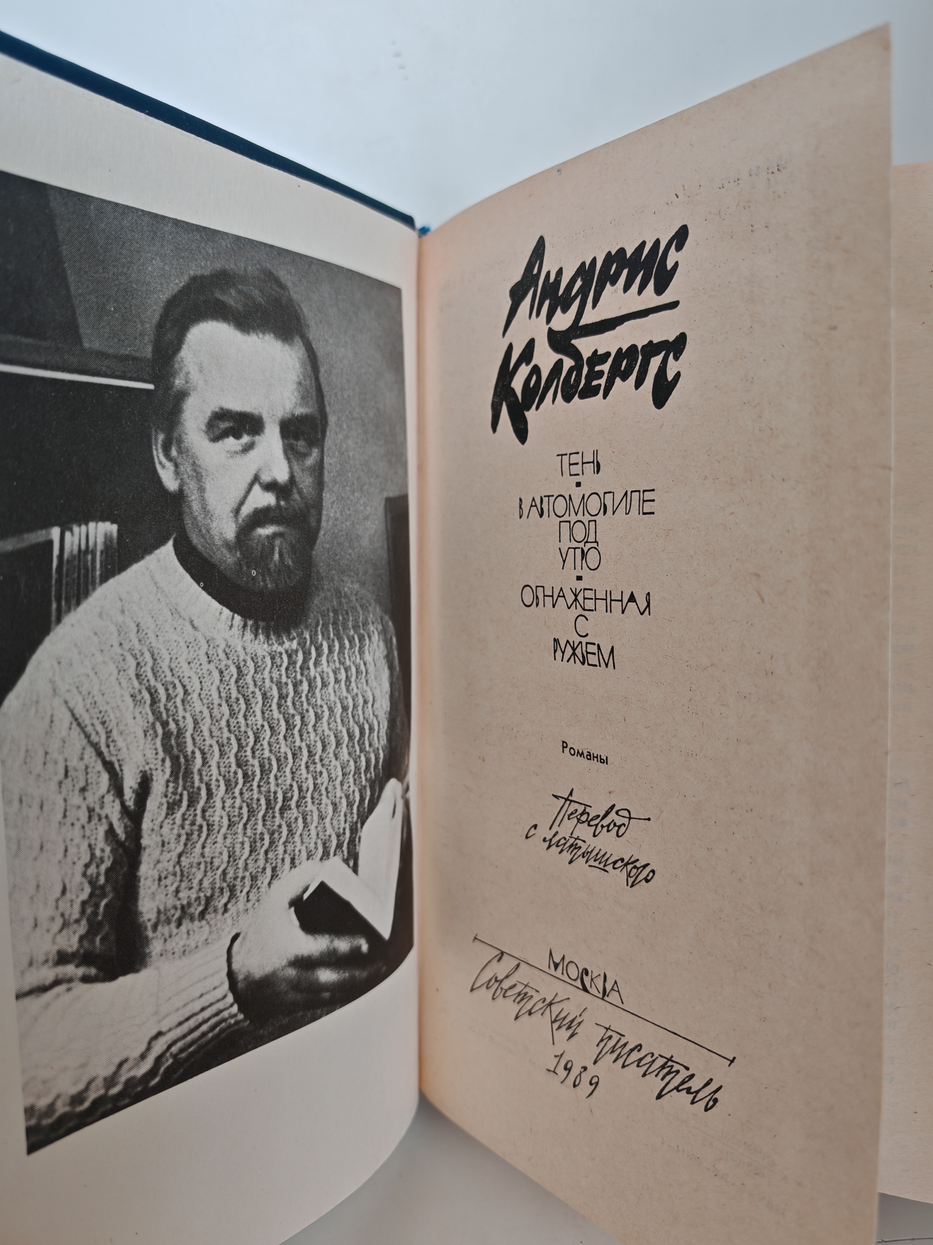 Сборник включает три романа признанного мастера детективного жанра Андриса Колбергса: «Тень», «В автомобиле под утро» и «Обнажённая с ружьём». В произведениях удачно сочетаются острая сюжетная занимательность и постановка серьёзных социальных проблем. История, связанная с написанием книги: в сборник вошёл ранее не издававшийся в СССР роман «В автомобиле под утро», а также хорошо известные читателям романы «Тень» и «Обнажённая с ружьём». Книга стала одним из знаковых изданий детективной литературы конца 1980-х годов. Информация об авторе (Андрис Леонидович Колбергс): — родился 21 декабря 1938 г. в Юрмале (Латвия) в семье моряка; — окончил семилетнюю школу № 24 и вечернюю среднюю школу № 27 в Риге (1959 г.); — учился в Московском полиграфическом институте на редакторском факультете (1966–1968 гг.); — начал публиковаться с 1965 г. (юмористический рассказ «Холодильник» в журнале «Dadzis»); — один из самых известных латвийских писателей детективного жанра; — член Союза писателей Латвии с 1974 г.; — работал киносценаристом на Рижской киностудии (плодотворный союз с режиссёром Алоизом Бренчем); — автор многочисленных туристических путеводителей и книг по истории Риги; — занимал общественные посты: первый председатель возрождённого Рижского Латышского общества (1989 г.), президент Латвийской ассоциации писателей детективного жанра, главный редактор журнала «Atpūta» (1991–1992 гг.); — умер 5 ноября 2021 г. в Риге от COVID-19.