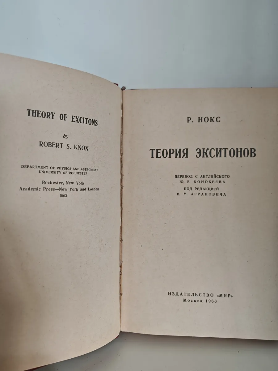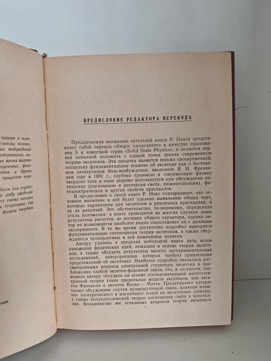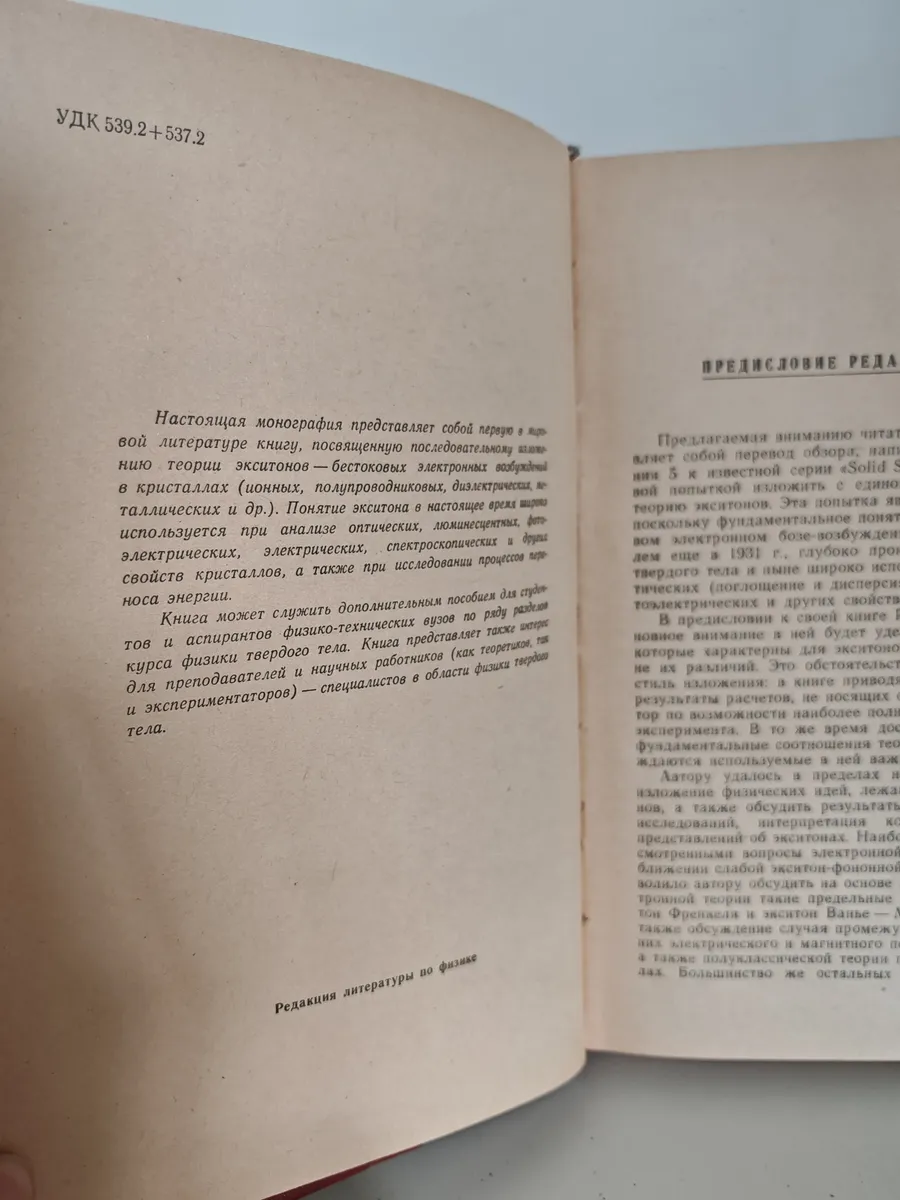 явления переноса и связанные с ними вопросы (теория переноса энергии экситонами, радиационный распад) . Особое внимание уделено выявлению общих черт, характерных для экситонов в различных кристаллах. Приведены результаты расчётов и их сопоставление с экспериментальными данными. Книга предназначена для студентов и аспирантов физико-технических вузов, а также для преподавателей и научных работников в области физики твёрдого тела.
