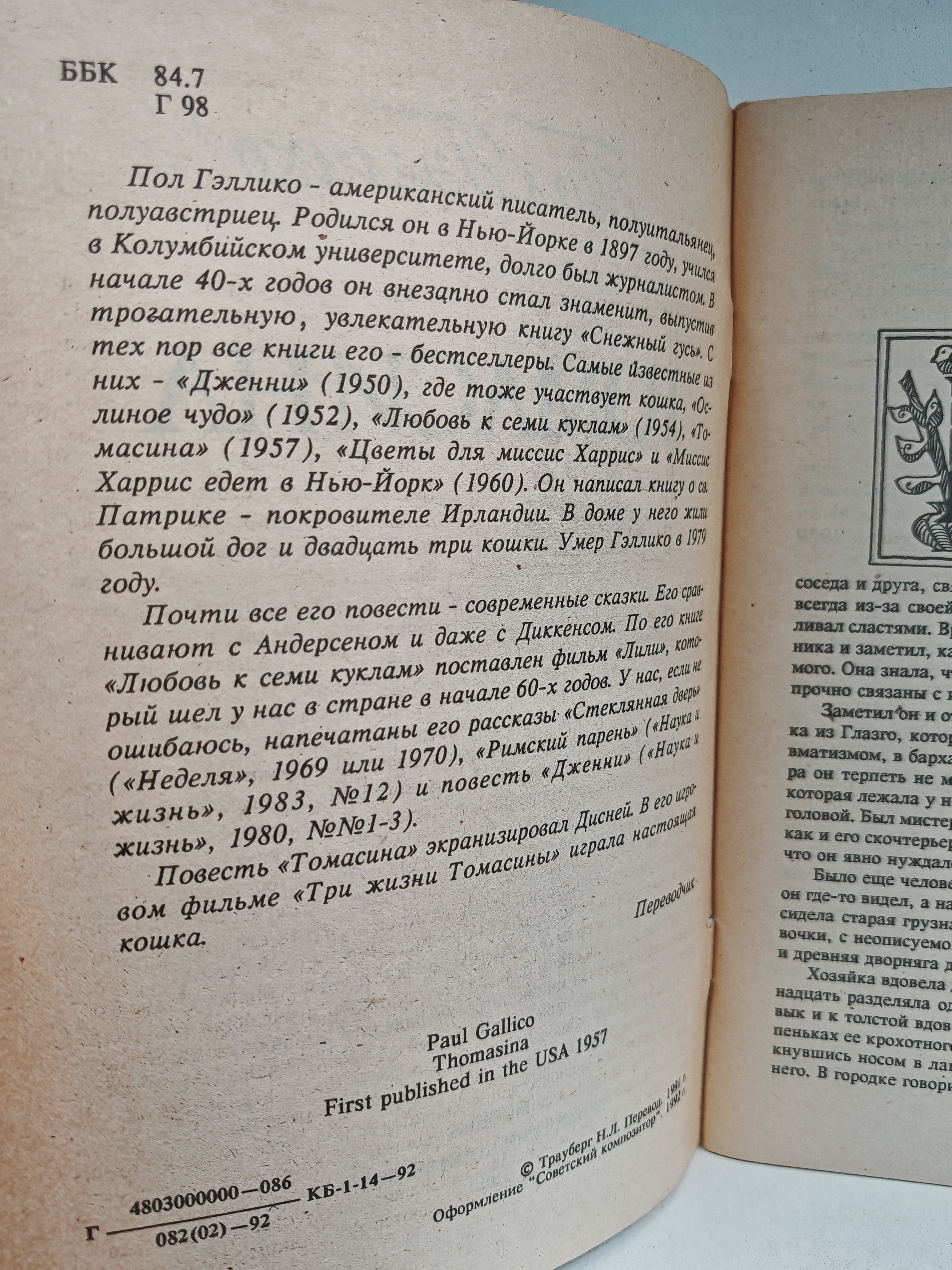 Повесть ТОМАСИНА экранизировал Дисней. В его игровом фильме "Три жизни Томасины" играла настоящая кошка.