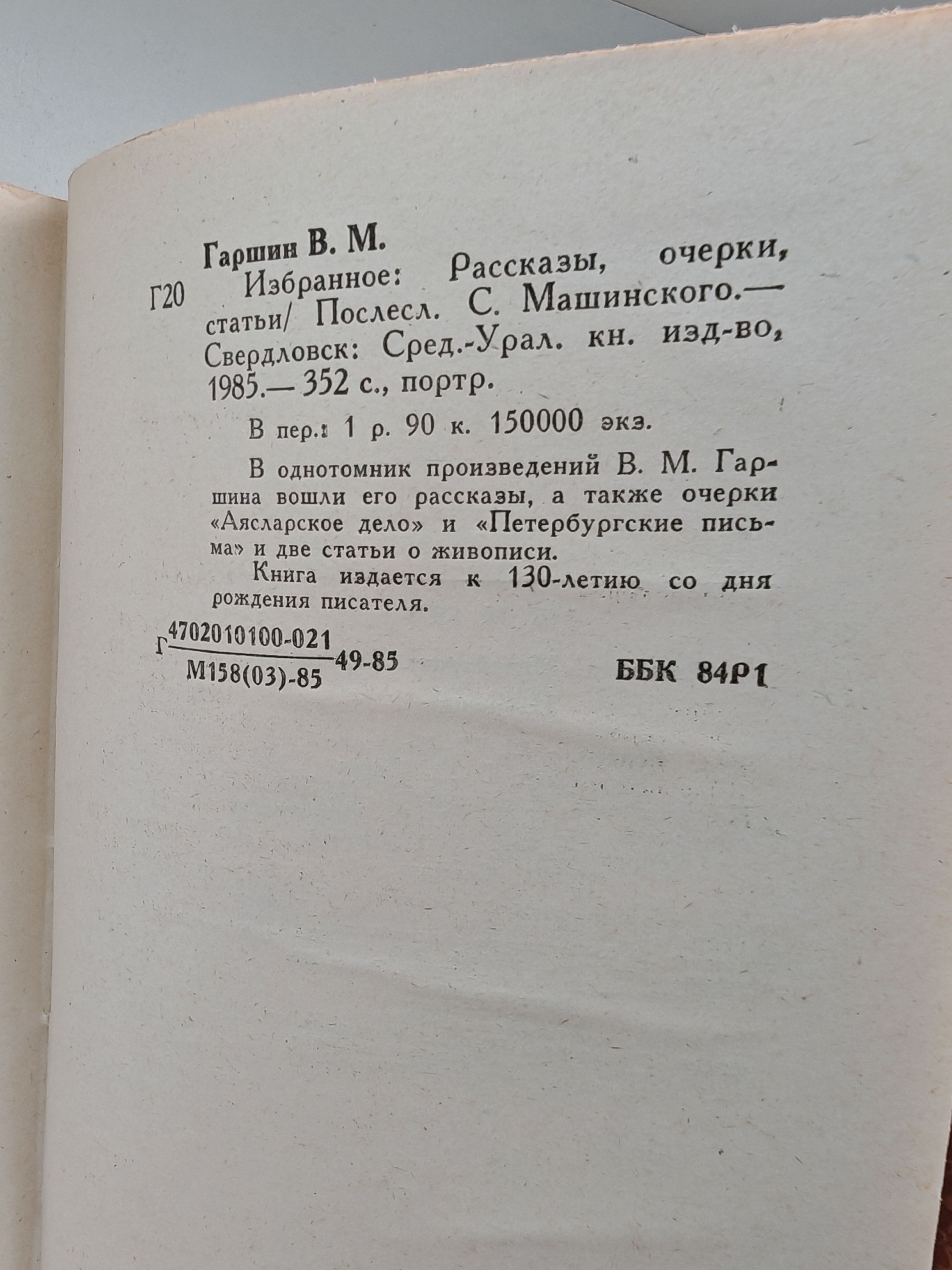 В однотомник произведений В. М. Гаршина вошли его рассказы, а также очерки "Аясларское дело" и "Петербургские письма" и две статьи о живописи. Книга издается к 130-летию со дня рождения писателя.