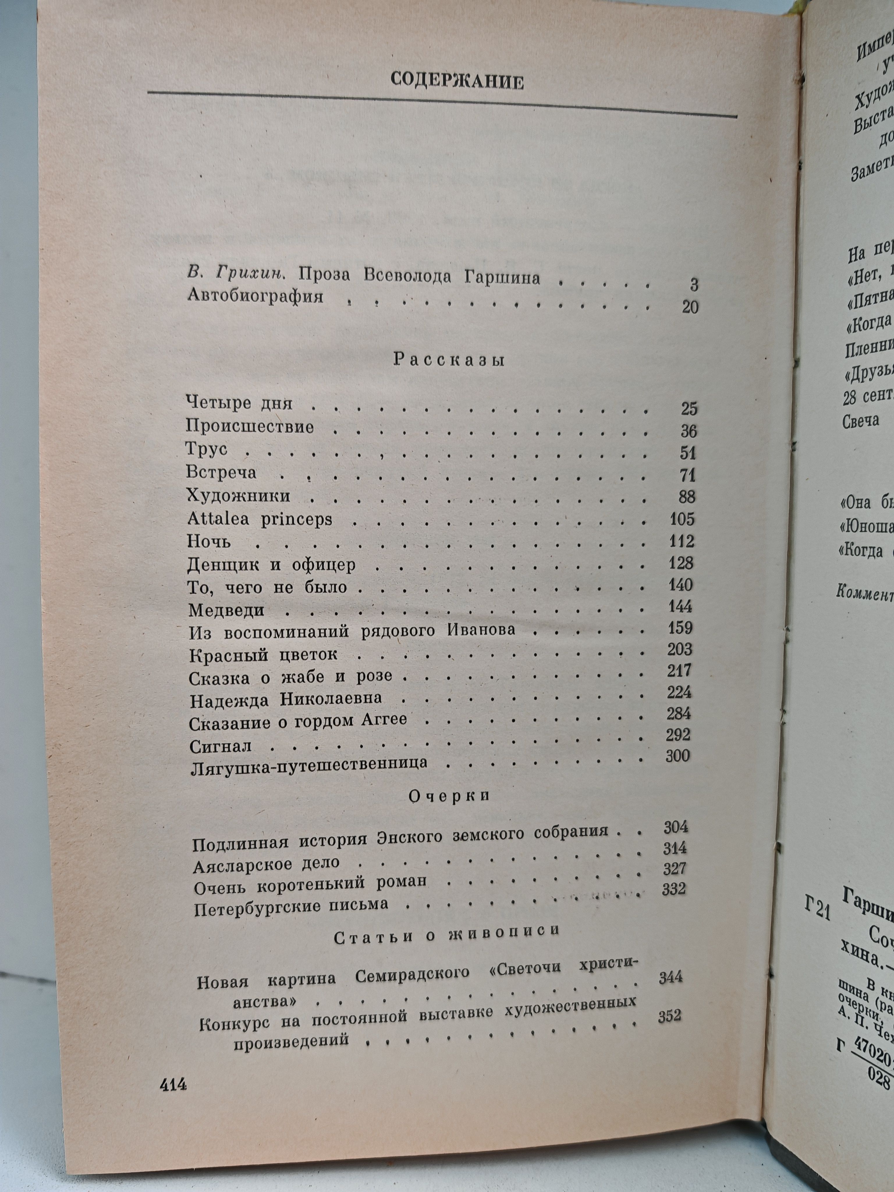 В историю русской литературы В.М. Гаршин вошел как мастер психологического рассказа. В настоящее издание включены рассказы, созданные писателем в 70-80-е годы, а также его статьи о живописи.
